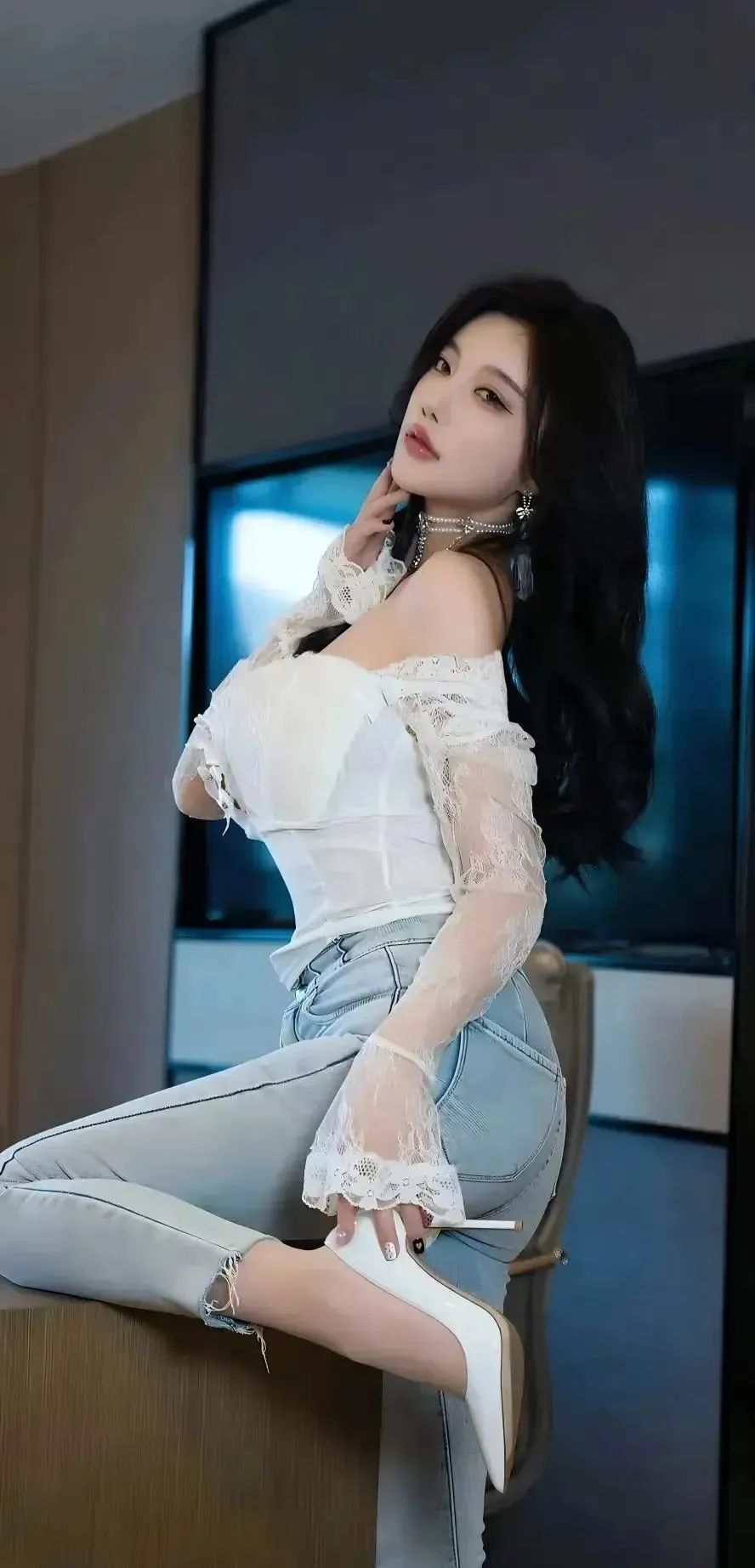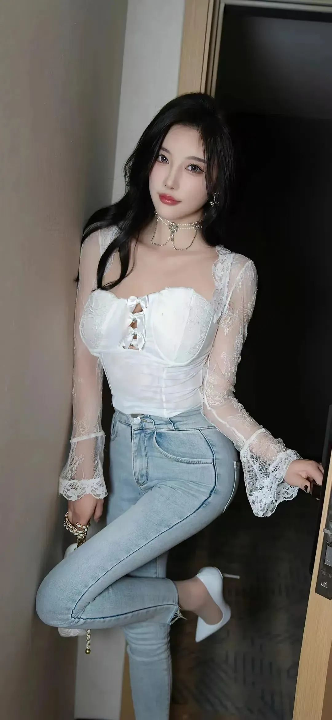 今天给大家带来一组国内顶级模特杨晨晨的写真,她身穿白色蕾丝上衣,搭配紧身牛仔裤和高跟鞋,将完美腰臀比和极品身材很好的展示了出来。