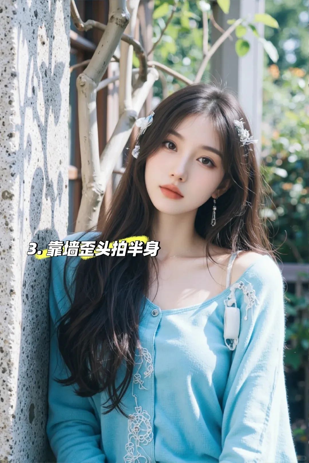 倚靠在墙边拍照,出片率超高。再配上歪头看镜头的动作,照片瞬间变得随性自然,俏皮可爱中还带着一丝小文艺的气息。