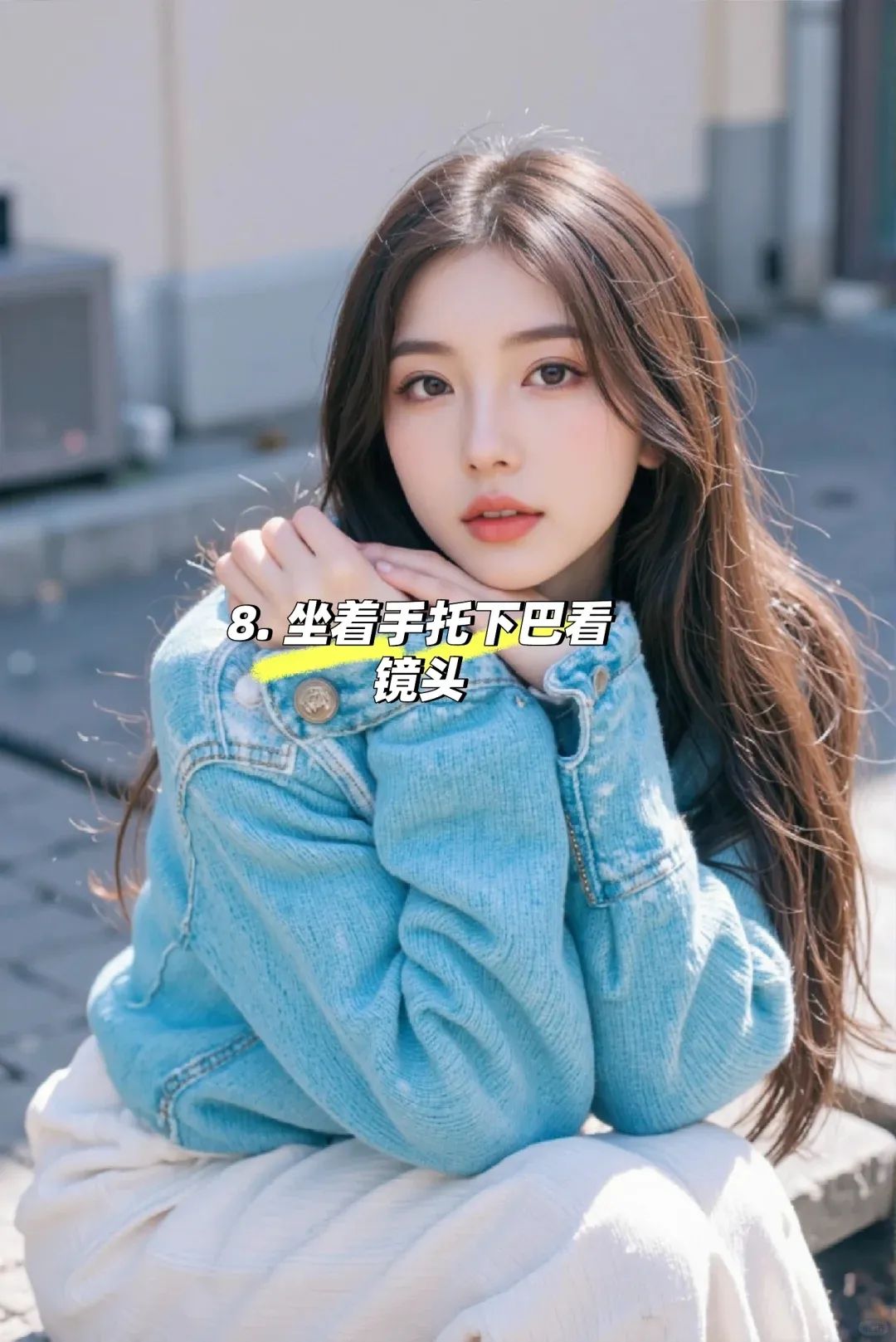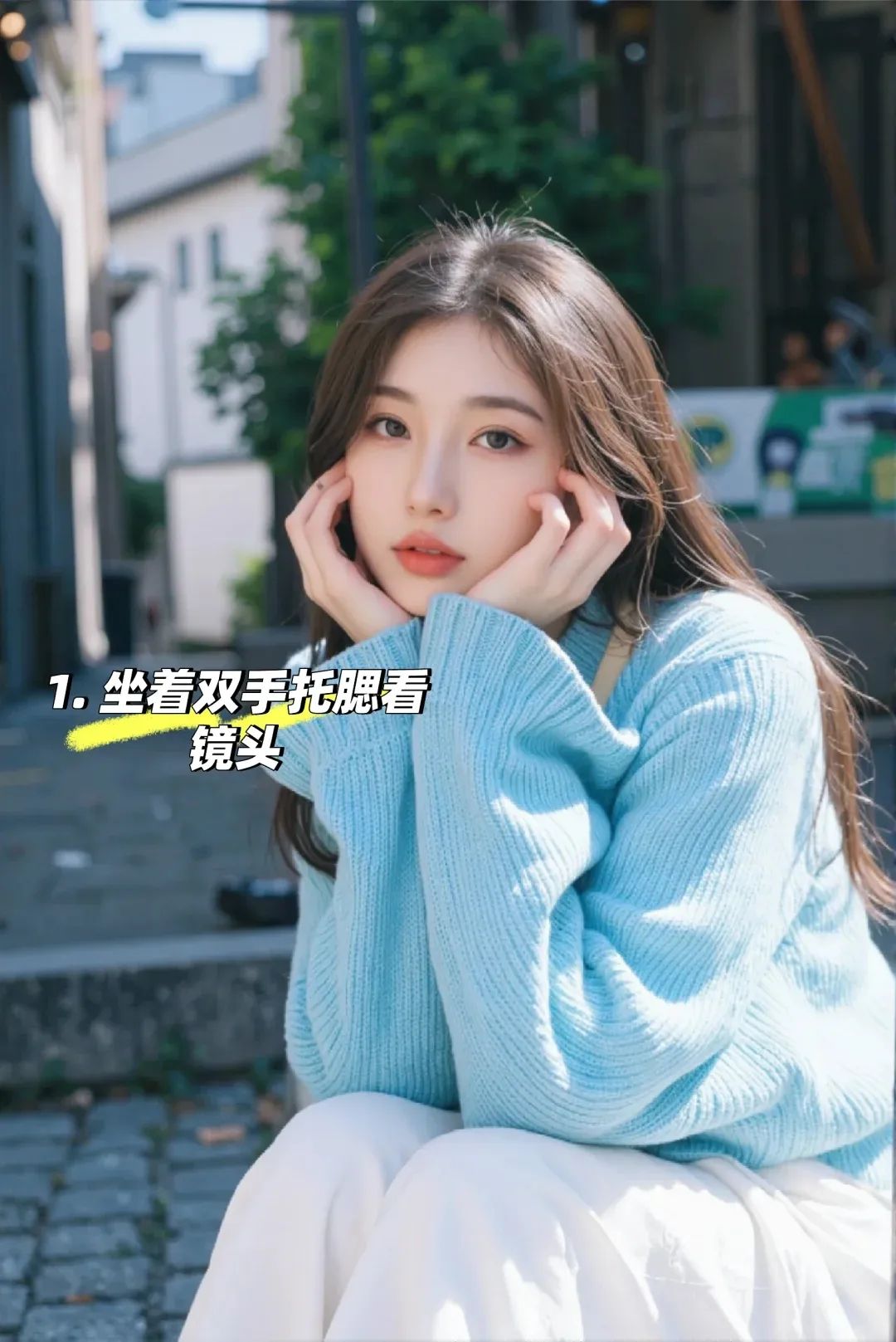 寻一处可坐之地,像台阶、长椅或是街边的马路牙子都行。双手自然地托住下巴,手指微微弯曲,俏皮又松弛地看向镜头。不管是和闺蜜一起拍,还是自己单独入镜,都能拍出可爱俏皮的效果,完全不会有刻意做作之感。