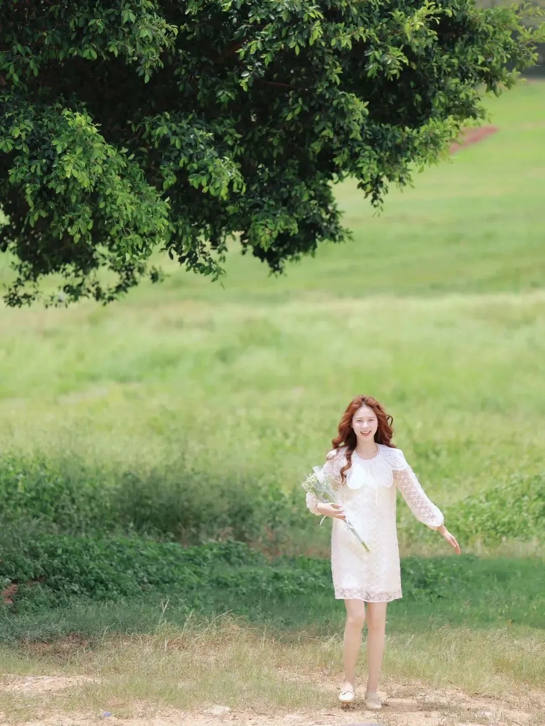 在大的场景下,模特的脸自然而然就会变得更小更自然,选择一个空旷一点的环境,让自己成为画面中的一个部分,借助环境的元素分散观众的注意力。