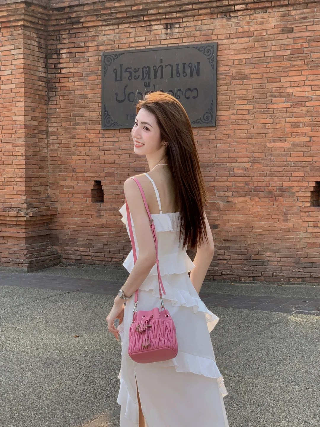 在拍摄时,可以坐在小台阶上、草地上或岩石上,让摄影师从下往上拍摄。这样的视角能够拉长你的腿部线条,使身材比例更加完美。同时,也可以尝试侧拍或背拍等不同的角度,以展现出长裙的不同侧面和线条。