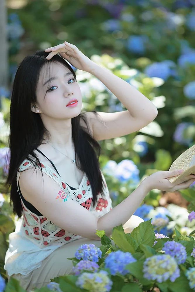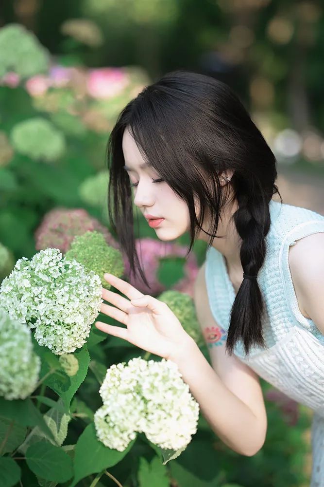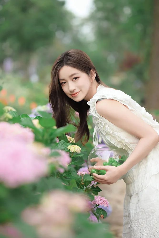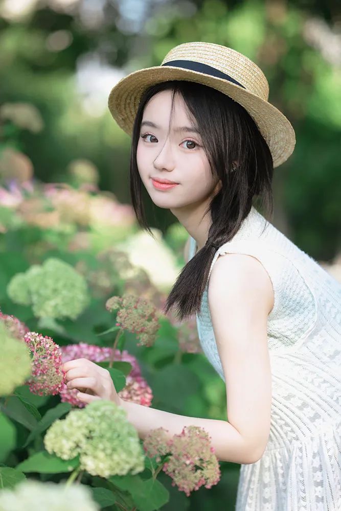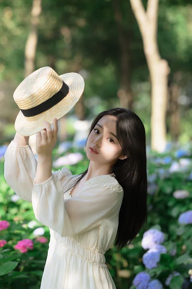 首先,为了拍摄出理想的人像效果,选择一个晴朗且光线适中的日子至关重要。我们要尽量避免在中午12点至2点这段时间内拍摄,因为此时的阳光过于强烈。我建议选择在下午4点至6点之间进行拍摄,此时的光线较为柔和,色彩呈现出温暖的橙红色调,有助于营造出温馨的夏日人像氛围。 在服装的选择上,我们可以倾向于清爽、简约的风格。纯色连衣裙是个不错的选择,再搭配一顶草帽或一些上镜的仿真水果作为道具,就能轻松打造出夏日感十足的造型。 夏日的绣球花是拍摄人像的上佳元素之一。我们可以选择在盛开的绣球花丛中取景,让人物置身于花海之中,捕捉到被花朵环绕的美丽瞬间。 在拍摄技巧上,我们可以尝试降低拍摄角度,让部分花朵靠近镜头形成前景虚化,以此来增强画面的层次感。由于花丛通常较矮,若想拍摄到满屏的花朵,可以让模特蹲在花丛中,摄影师则从高处俯拍,这样便能捕捉到更为壮观的花海景象。同时,确保模特背后有光线照射,这样不仅能让照片看起来更加明亮,还有助于后期处理出更为纯净的画面。 除了将光置于人物后方外,我们还可以通过调整拍摄位置,让少量光线洒在模特的背部和手臂上,为画面增添一丝温暖。当然,也可以让光线直接洒落在人物身上和脸上,创造出迷人的光影效果。 在模特摆姿方面,可以尝试让模特单手触摸花朵,闭上眼睛嗅闻花香,然后近距离拍摄其侧脸特写。 利用帽子遮挡部分光线,让光线在人物面部形成柔和的阴影,同样能够营造出令人心动的光影效果。 为了让画面更加知性温柔,可以让模特将头发轻轻拨到一侧。我特别推荐使用侧后方45度方向的光线进行拍摄,这样可以照亮人物的后背,使画面更加通透。 对于不太擅长摆姿势的朋友来说,单手触摸另一侧耳后的头发是一个简单又上镜的动作。 在拍摄过程中,我还发现了一处高大的花墙,那里的花朵从地面平铺式排列转变为纵向排列在墙面上。模特坐在椅子上,以花墙为背景进行拍摄,可以轻松捕捉到满屏的花朵和绿叶,整个画面充满了春夏的气息。 当拍摄马路两旁的花朵时,由于花朵的高度大约位于模特腰部,站立拍摄的话花入镜的面积有限。 此时可以让模特弯腰侧身靠近花朵,然后侧面回头看向镜头,这样便能拍摄到更多的花朵。在构图上建议拍摄到模特的整个上半身以达到最佳效果。 我们还可以靠近模特拍摄一些与花朵的近距离特写镜头,捕捉人物迷人的大眼睛和温柔的眼神。 如前面的拍摄方法一样,将相机放入花丛中让部分花朵挡在镜头前,画面便会自然形成前景虚化、中景清晰、背景虚化的三个层次效果,呈现出由近及远的层次感。 上面这张照片是顺光拍摄,虽然光线比较常规但氛围感略显不足。我们可以尝试走到模特的另一侧进行拍摄,此时已是下午五点左右,光线变得更为柔和。在模特的发丝周围形成一圈轻微的光晕,从而捕捉到模特在背光下那朦胧而又柔和的美感。 最后,如果在公园中拍摄时发现了小亭子千万不要错过!走进亭子内部进行拍摄会发现里面的光线依然十分充足,特别是当亭子为白色且有高大树木作为背景时,虚化后的背景会呈现出一片生机盎然的绿色,为照片增添浓厚的夏日清新气息。 以上便是本次夏日花季主题人像摄影的全部实用技巧和建议啦!赶快约上你的小姐姐,一起去户外尽情拍摄属于你们的花季人像大片吧!