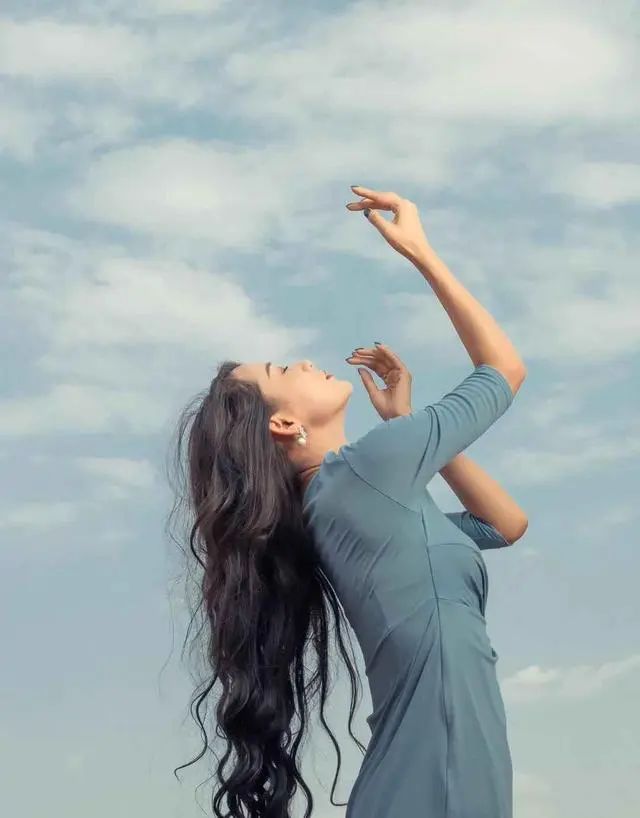 恰到好处的手部姿势在人像摄影中发挥着至关重要的作用,它们不仅能显著提升照片的视觉吸引力,还能巧妙地营造特定的情绪氛围。例如,当置身于大自然或以壮丽的蓝天为背景时,你可以模仿下面的女生,将头部轻轻仰起,同时将双手半空举高,使身体呈现出一种放松而自然的状态。