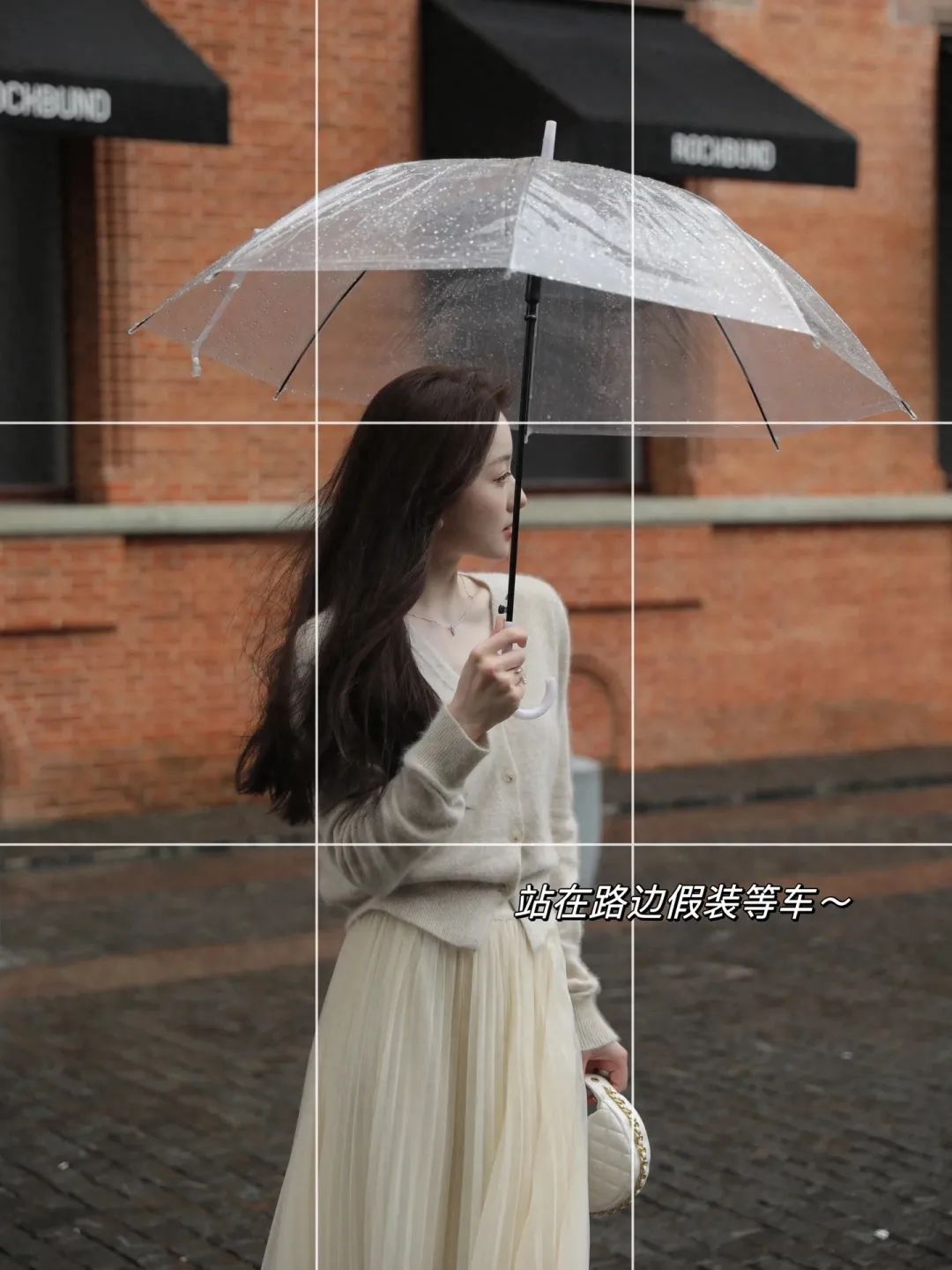在路边拍摄时,想要展现自然且好看的姿态,不妨尝试假装在等车的姿势。此时,你可以避免直视镜头,而是让摄影师从你的侧前方进行拍摄。这样的角度不仅能捕捉到你自然放松的状态,还能借助道路的线条延伸性质来辅助拍摄,从而加强照片的视觉空间感,让画面更具深度和立体感。