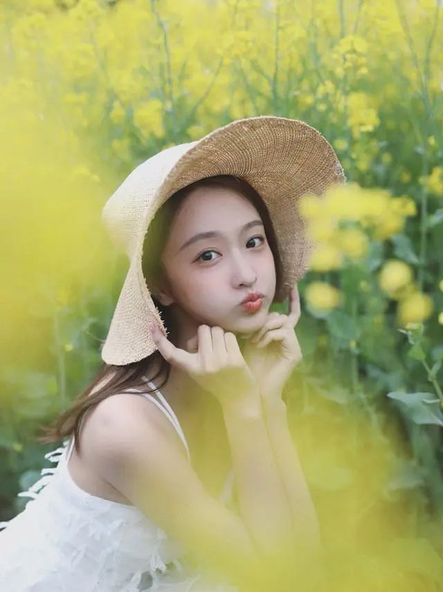油菜花的美丽,不仅可以被静静欣赏,还可以与你的可爱萌态完美融合。你可以蹲在油菜花丛中,以油菜花为背景或前景,增添画面的层次感和色彩对比。同时,不妨嘟嘟嘴、玩玩帽子,展现出你的俏皮可爱。这样的拍照方式不仅显得萌趣十足,更能在油菜花的映衬下,展现出你的独特魅力,让照片看起来既萌又美,别有一番风味。
