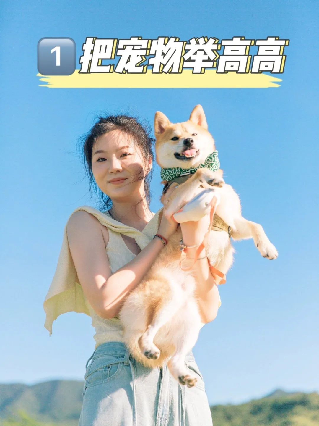 拍摄宠物合影时,一个简单而富有创意的方法是尝试将宠物举起,与它们一同微笑面对镜头。这种“举高高”的拍摄方式不仅增强了照片中的互动感,还展现了你们之间的深厚情感。它看起来非常自然,而且很容易模仿。不妨尝试一下,让你的宠物合影更加生动和有趣!
