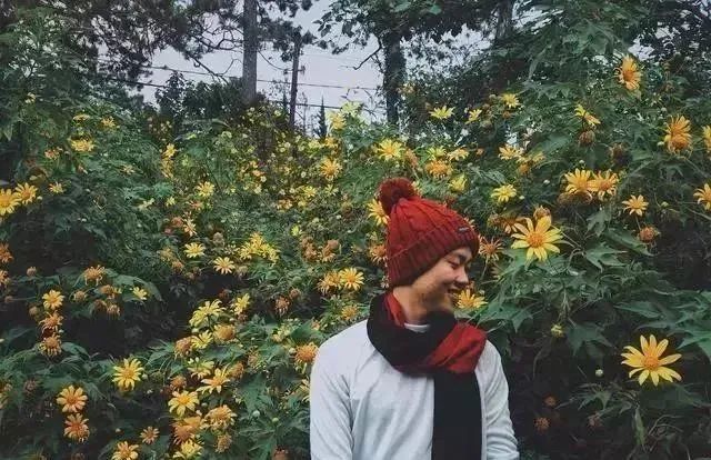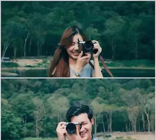 喜欢去森林里用树遮脸,花园里的花(不要摘花),拿个围巾等......但是露出一半脸。