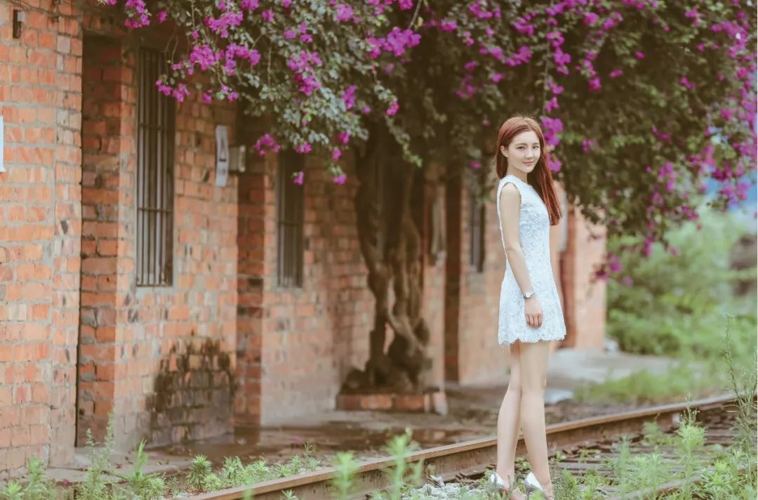 俯视拍摄人像,人物会被压缩,若结合全景人像的取景方法,则照片更具视觉冲击力。 除了俯视拍摄、仰视拍摄、平视拍摄以外,在 拍摄美女人像时,还需要注意人像主体的正面、侧 面、背影三种角度。从方位变化来说,俯视拍摄、 仰视拍摄、平视拍摄属于高度方面的角度变化,而 正面、侧面、背影则属于水平上的变化。 我们在针对这几种拍摄角度进行拍摄时,可以 固定一种方位,选择另一种方位上不同角度进行拍摄,比如,选择平视角度进行拍摄时,模特旋转身 体拍摄其正面、侧面、背影;又比如,拍摄人像模 特的正面,我们可以选择仰视拍摄、平视拍摄、俯 视拍摄,并观察其最终的画面效果。 对比观察人像正面、侧面效果时,我们选择平 视角度,让模特旋转身体,从而拍摄出以下对比图: 在延伸到远方的小路上拍摄美女背影,以远处的天空与道路为背景,画面更具魅力。