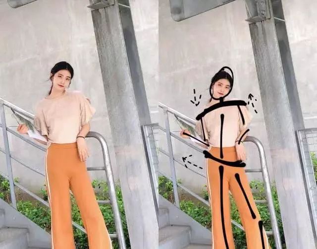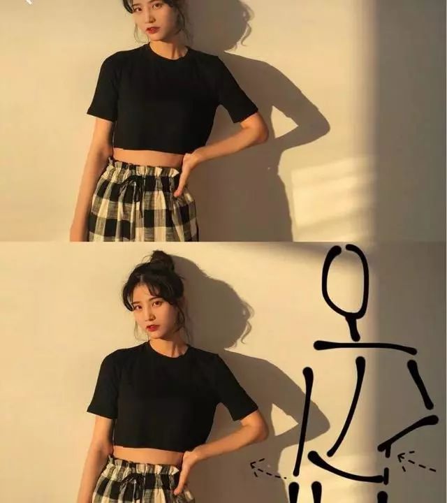 2、手上有个道具很重要!!!日常的话可以拿本书什么的,用力点在这两个地方:屁屁要稍微顶一下,肩膀也要稍微斜一点,然后旁边要有支撑物,整体整体效果会很好。