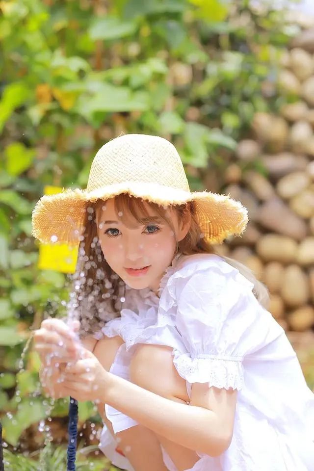 我们在自家的院子里或者是外面的菜园里,都是有水管的,我们可以利用水管的水来当道具,女生侧立蹲在镜头前,用高速快门记录下瞬间的美,为了让水花更好看,建议打开后置闪光灯,这样拍出来的水花晶莹剔透,而不是灰蒙蒙的感觉。