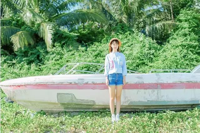 上面这张照片除外人以外有哪些元素:一是天空、二是绿色植物、三是破船,三个元素。但我们要记住:外景拍摄,不是说百分之百,但是我90%里面都会有“天空”这个元素,为什么呢?