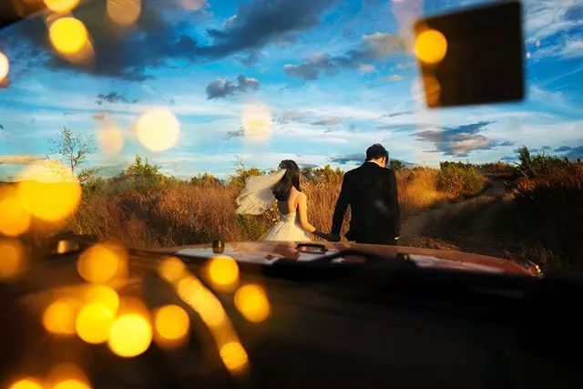 夕阳时段大理的郊外,透过车窗拍摄,利用低色温小灯串在前景处制造光斑,丰富画面层次,形成色彩对比,营造出一种梦幻的虚实关系,以及浪漫的环境氛围,画面充满了电影感。