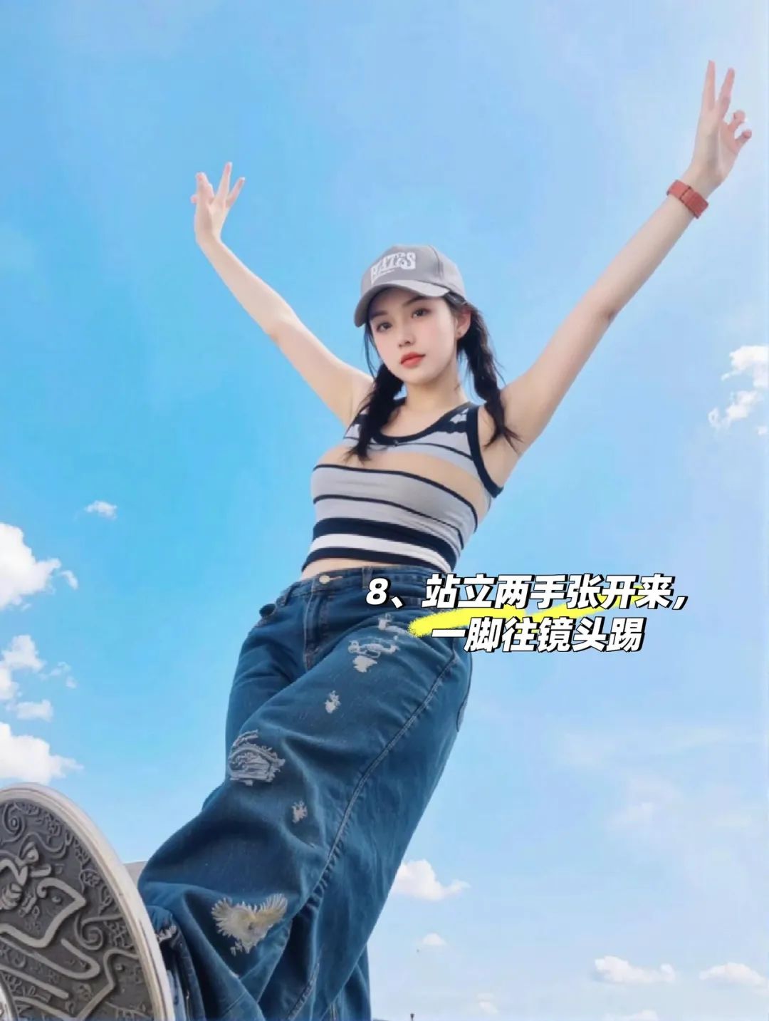 穿上你最潮的衣服,走进这蓝天白云的天然摄影棚,运用这些拍照姿势,尽情地展现自己的魅力吧……