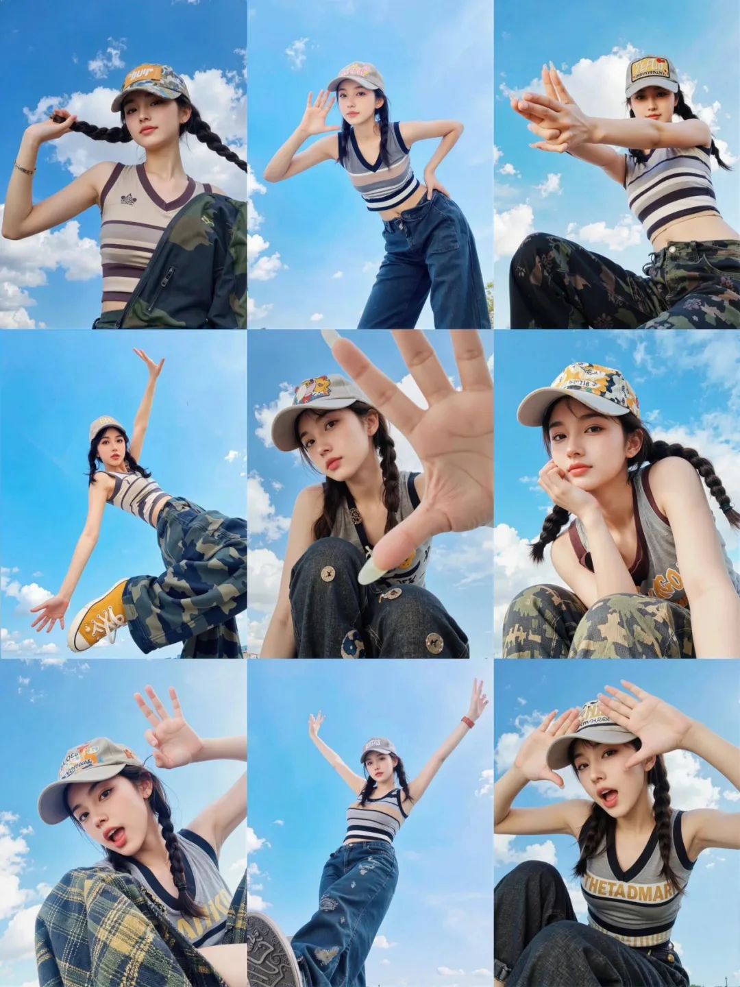 下面就为大家带来一组超具个性的拍照姿势,让你在蓝天白云的背景下轻松成为时尚焦点。