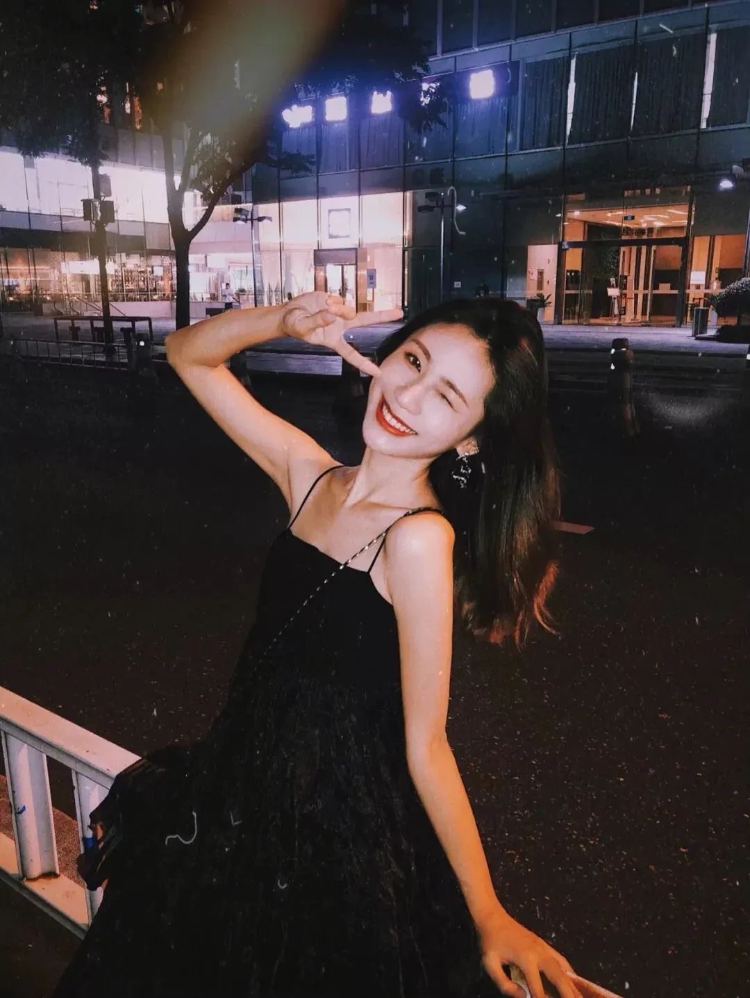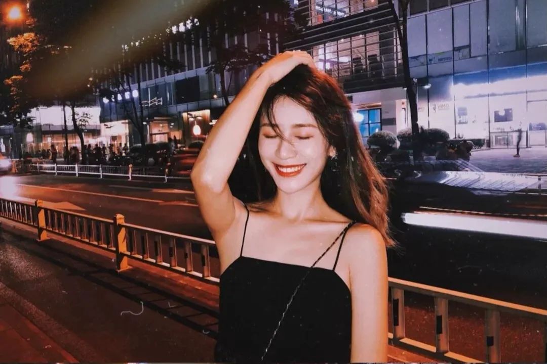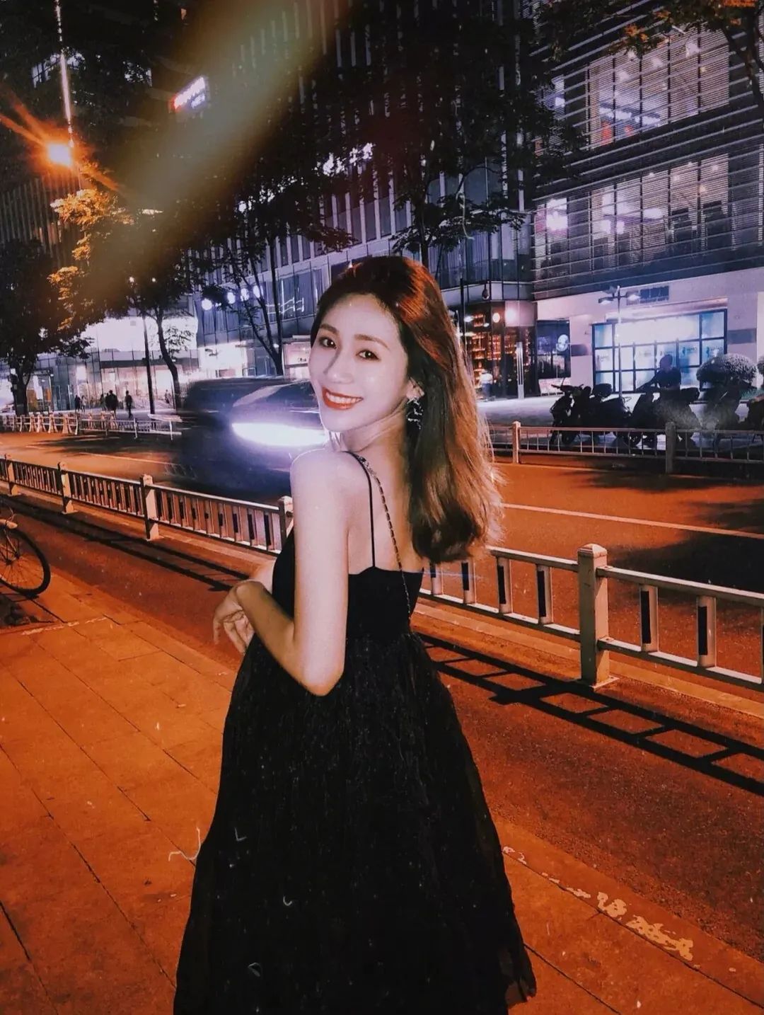 姿势4:歪头露笑,眉眼弯弯,姿态俏皮,身体微微倾斜,在夜景烘托下,尽显灵动活泼与青春魅力。