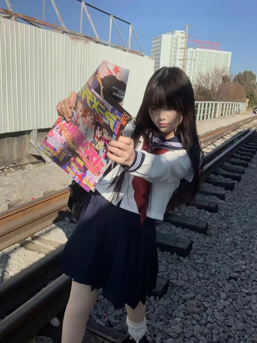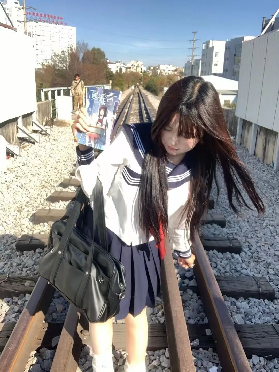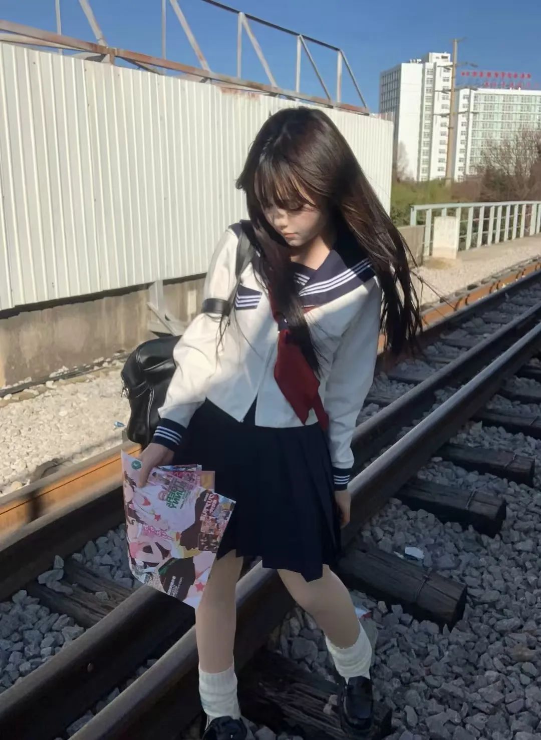 双手伸直,将手中色彩鲜艳的刊物朝镜头方向递出,仿佛在热情分享。身体稍向前倾,眼神专注看向镜头,表情略显严肃,给人一种认真且自信的感觉。另一只手自然辅助持物,背着黑色手提包,双腿姿态自然。整体姿势充满动感,展现出青春活力的同时,借助递刊物的动作,增强了与观者的互动感。微微仰头,双眼轻闭,似在感受清风与阳光,神态宁静惬意。一手自然垂挎着黑色手提包,另一手持着印有动漫图案的物件,随性又自然。长发顺着身形垂下,在微风中似有飘动,与身后延伸的铁轨和开阔蓝天相衬,营造出一种悠然、文艺的氛围,既展现出青春少女的柔美,又传递出一种沉浸于自我世界的闲适感。一只手拿着印有动漫图案的物件,另一只手轻拂被风吹乱的头发,仿佛是在不经意间被捕捉到的瞬间。身体微微前倾,脚步迈出,展现出前行的姿态,双腿的动作自然流畅。长发随风飘动,增添了画面的灵动性。微微低头,眼神向下,似在思索或沉浸于自己的世界,长发自然垂落,增添了几分温柔的气质。一手拿着印有动漫图案的物品,随意下垂,另一手自然摆动。双腿姿态放松,一只脚轻踏在枕木上,另一只脚微微错开。整体姿势与身后的铁轨、蓝天及建筑物背景相衬,营造出一种静谧、文艺的氛围,展现出青春少女独有的恬静韵味 。用有动漫人物的刊物半掩面部,营造出一种羞涩又俏皮的氛围。双腿微微错开,站姿自然随意,展现出放松的状态。背着黑色手提包,长发垂落两侧,身姿显得纤细柔美。整个姿势带有少女的纯真可爱,仿佛是在充满故事感的场景中,不经意间流露出内心的小情绪,很好地契合了日系青春风格,给人一种青春灵动且富有韵味的感觉 。一手拿着物品,手臂抬起,动作自然不僵硬。另一只手轻触身旁物件,身体微微侧向镜头,眼神正视前方,表情平静又略带专注,耳机线垂下,增添了几分随性的氛围感。双手拿着印有动漫图案的卡片,将面部遮挡起来,给人一种神秘且略带羞涩的感觉。双腿自然伸直,身旁放着黑色手提包和散落的刊物,整体姿态放松。长发垂下,与安静的坐姿相衬,背景是铁轨和金属围栏,营造出一种孤寂又文艺的氛围,仿佛在享受独处的时光,又或是借物件隐藏自己的情绪,展现出一种青春的细腻与敏感 。坐在铁轨旁碎石上,姿态尽显温柔恬静。微微低头,眼神低垂,似在沉思,长发自然散落,增添了几分柔美。一手轻握印有动漫人物的卡片,一手搭在腿边,动作放松自然。双腿弯曲,身旁放着黑色手提包与散落的刊物,整体画面给人一种闲适之感。立于铁轨之上,身姿挺拔又略带俏皮。微微歪头,眼神略带审视看向镜头,表情透着一丝清冷与倔强。一手自然下垂,另一手拿着印有图案的物件,似不经意地展示。背着黑色手提包,长发在阳光下闪耀,随风轻摆,整体姿势展现出青春的自信与个性。直视镜头,眼神沉静,表情略显严肃,给人一种沉稳的气质。双手捧着带有图案的物件,自然下垂于身前,动作优雅。背着黑色手提包,长发顺滑地垂在肩头,与水手服的造型相得益彰。双腿并拢,站姿挺拔。身后延伸的铁轨和金属围栏背景,增添了画面的故事感,整体姿势既展现出少女的青春活力,又透露出一种安静内敛的魅力 。以上就是一些水手服拍照姿势的分享,希望对大家有所帮助,赶快收藏起来,下次拍照的时候用起来吧!