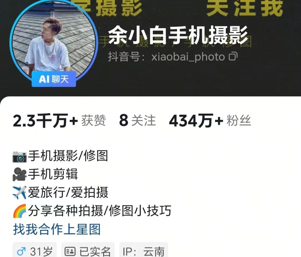 想要提升摄影水平,这5位摄影博主你一定要关注!看看这些博主有你认识的吗? 艺帆风顺 发布于 2025-04-14 32 次阅读 点击👇下方名片关注小琳,分享更多拍摄技巧图片来源网络,侵删想要提升摄影水平,关注一些优秀博主是非常有必要的。以下是我为大家推荐的5个博主,他们有着属于自己的拍摄风格和技巧,我相信你们会在他们当中获得许多摄影技巧和拍摄灵感。01卡卡宝贝贝卡卡宝贝贝摄影风格多样,无论是清新甜美的JK风,还是热辣迷人的夜景照,都信手拈来。她擅长运用光线和道具,让氛围满格。拍摄动作自然不做作,还鼓励素颜出镜,将摄影技巧简化,让普通人也能轻松拍出氛围感大片。02姜伊浩姜伊浩摄影风格极具特色,他擅长通过色彩和构图讲述故事,从而捕捉人物情绪与肢体语言,通过光影运用营造戏剧感,赋予画面强烈张力。彩处理犹如印象派油画,在写实基础上大胆创作,赋予照片独特影调 ,兼具电影海报质感与艺术感染力。03李啟航李啟航摄影风格主要是家庭日常生活,他擅长以家人尤其是奶奶为主角,融入乡村元素,赋予日常场景时尚感。构图上,遵循三分法、框架构图等原则,让画面和谐且层次分明;色彩运用大胆,借对比色突出主体,增强视觉冲击,呈现出大牌海报般的质感 。04余小白手机摄影余小白手机摄影风格以实用、易学、贴近生活为显著特点。构图上,他擅长运用三分法、框架构图等基础法则,让画面层次分明、主体突出 ,如在古建筑拍摄中,通过框架突出建筑韵味。光线运用上,他偏爱自然光,利用早晚柔和光线营造氛围,使照片自然真实。他还注重场景选择,挖掘生活中常见却易被忽视的场景,像街边小巷、公园树林等,让普通人也能轻松拍出生活质感。05黄辣叮er黄辣叮er的摄影风格充满青春活力与独特创意。构图时,她大胆采用低角度仰拍,增强画面视觉冲击力,像拍楼梯照,模特坐于楼梯,镜头拉大至2x,能突出人物主体 。色彩运用上,她偏好高饱和色彩,碰撞出吸睛的视觉效果。姿势引导也很新颖,让模特做出抽象又个性的动作,展现出松弛感与自然氛围,生活感十足。以上就是我为大家推荐的5位摄影博主,希望可以帮助到你更好的学会拍摄。如果有其他博主推荐欢迎大家积极留言。点击👇下方名片关注小琳,分享更多拍摄技巧