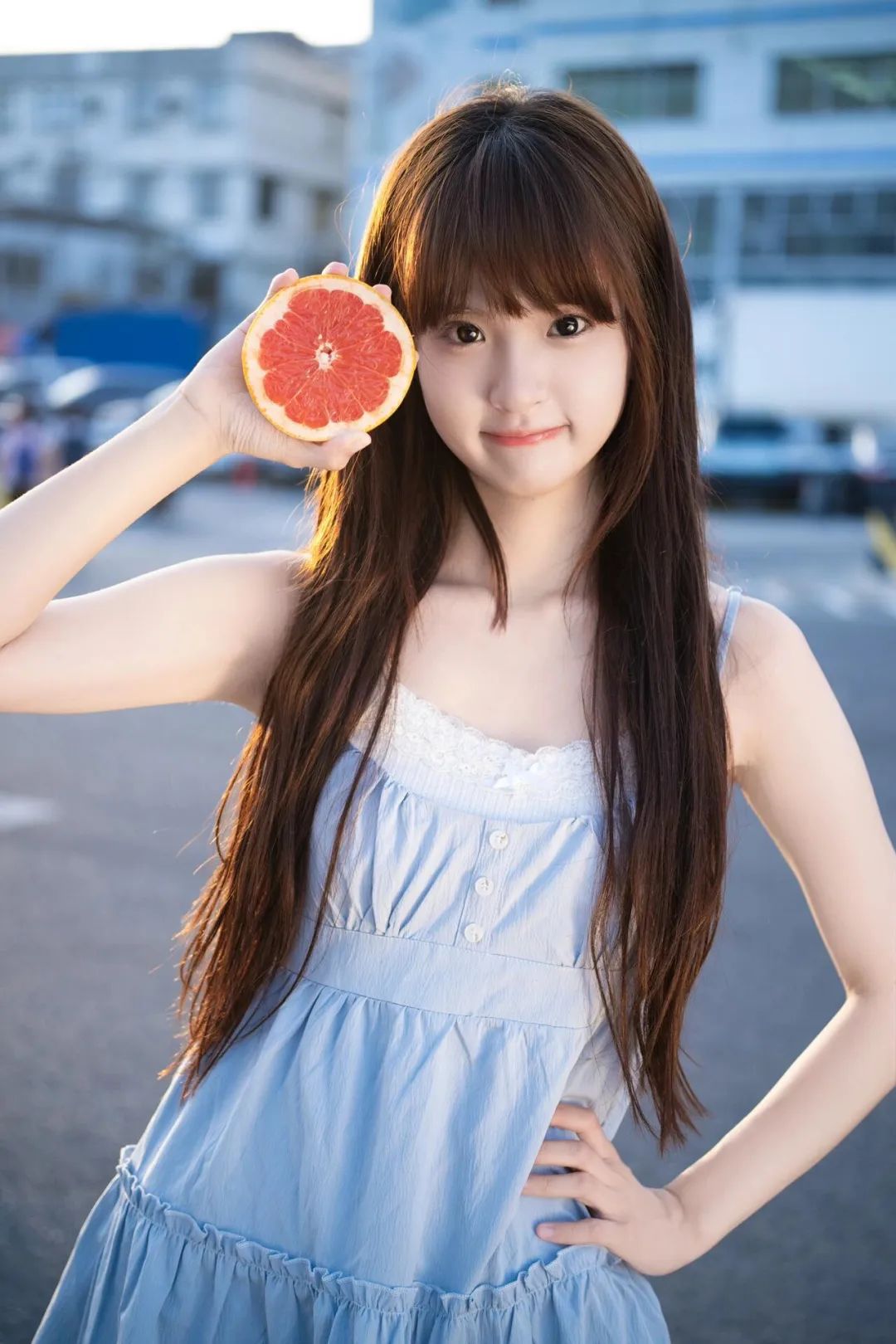 八、一手叉腰,一手拿柚子俏皮的看着镜头