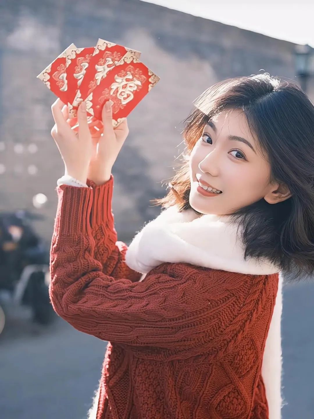 双手高举红包,微微回眸看向镜头,仿佛在与远方的亲人分享这份喜悦。这个拍照姿势不仅能展现出快乐和幸福,还突出了红包的重要性和意义。在拍摄时,可以捕捉人物表情和动作,以及红包上的细节,这样可以让照片更加生动、有趣,富有感染力。