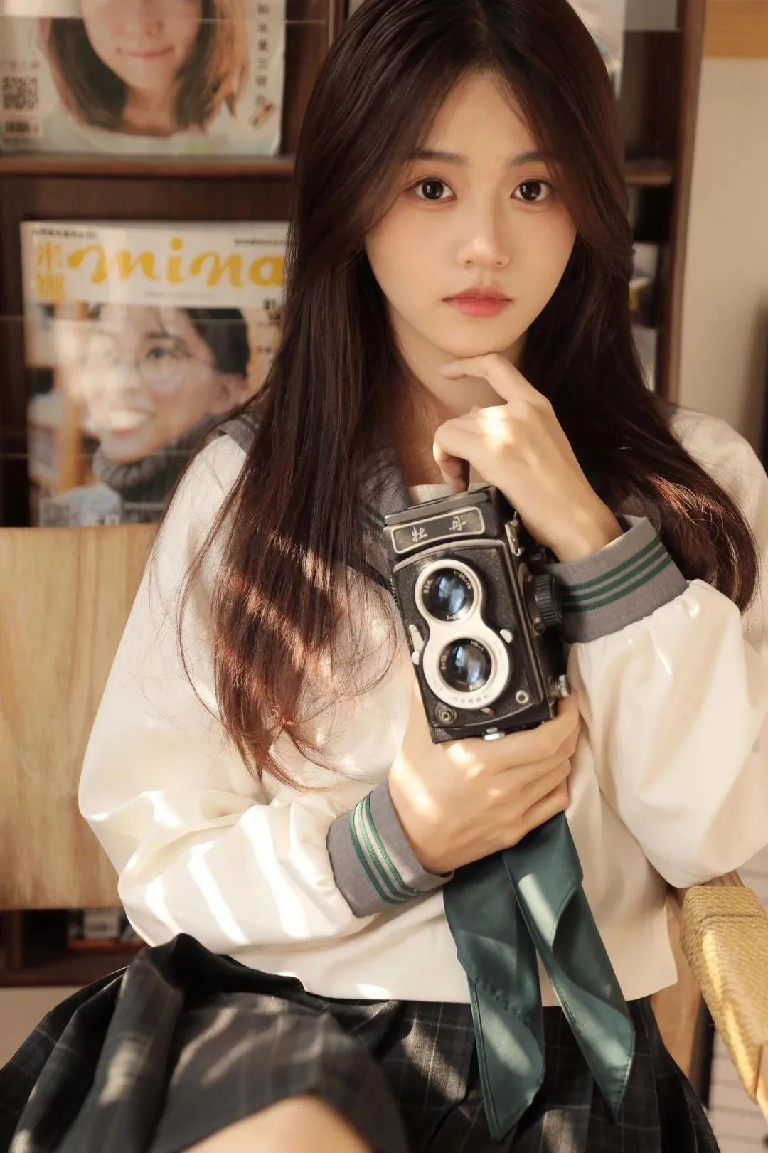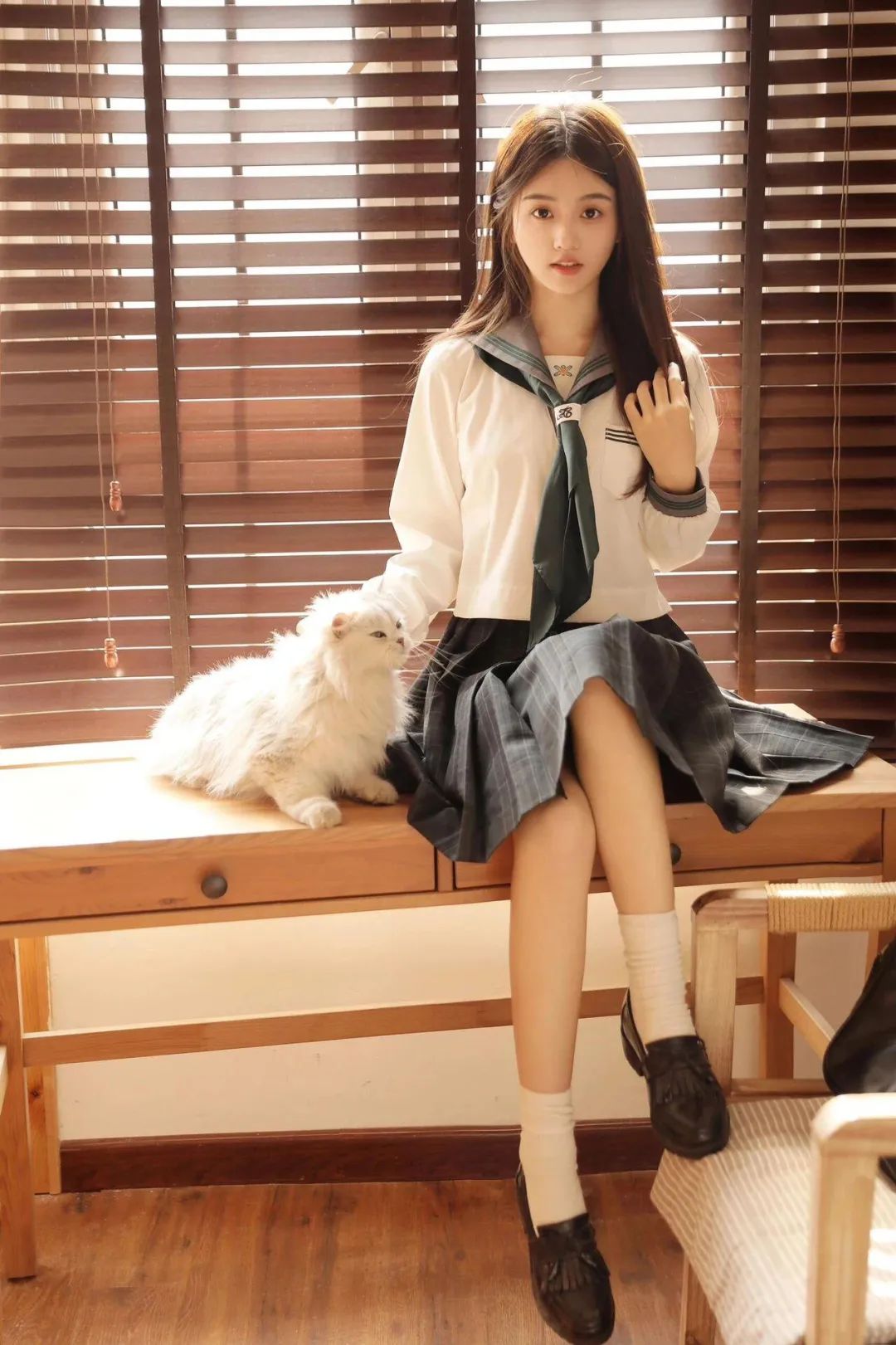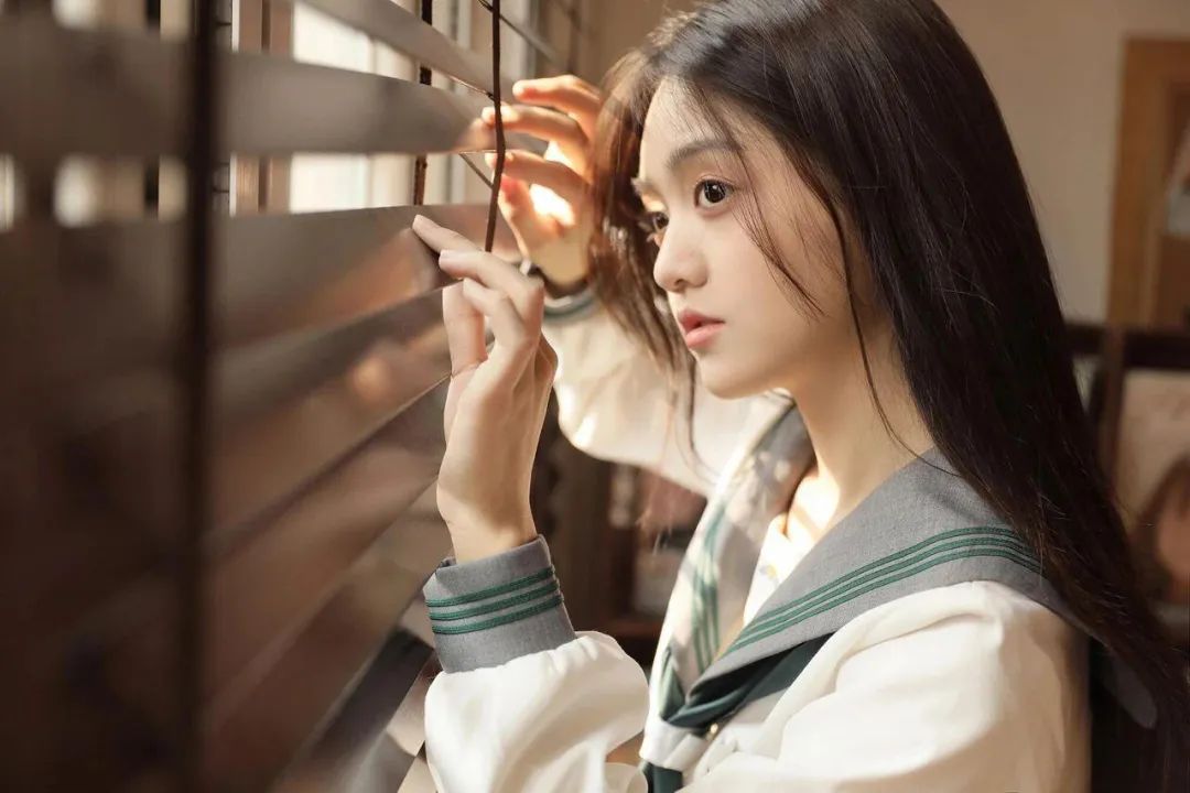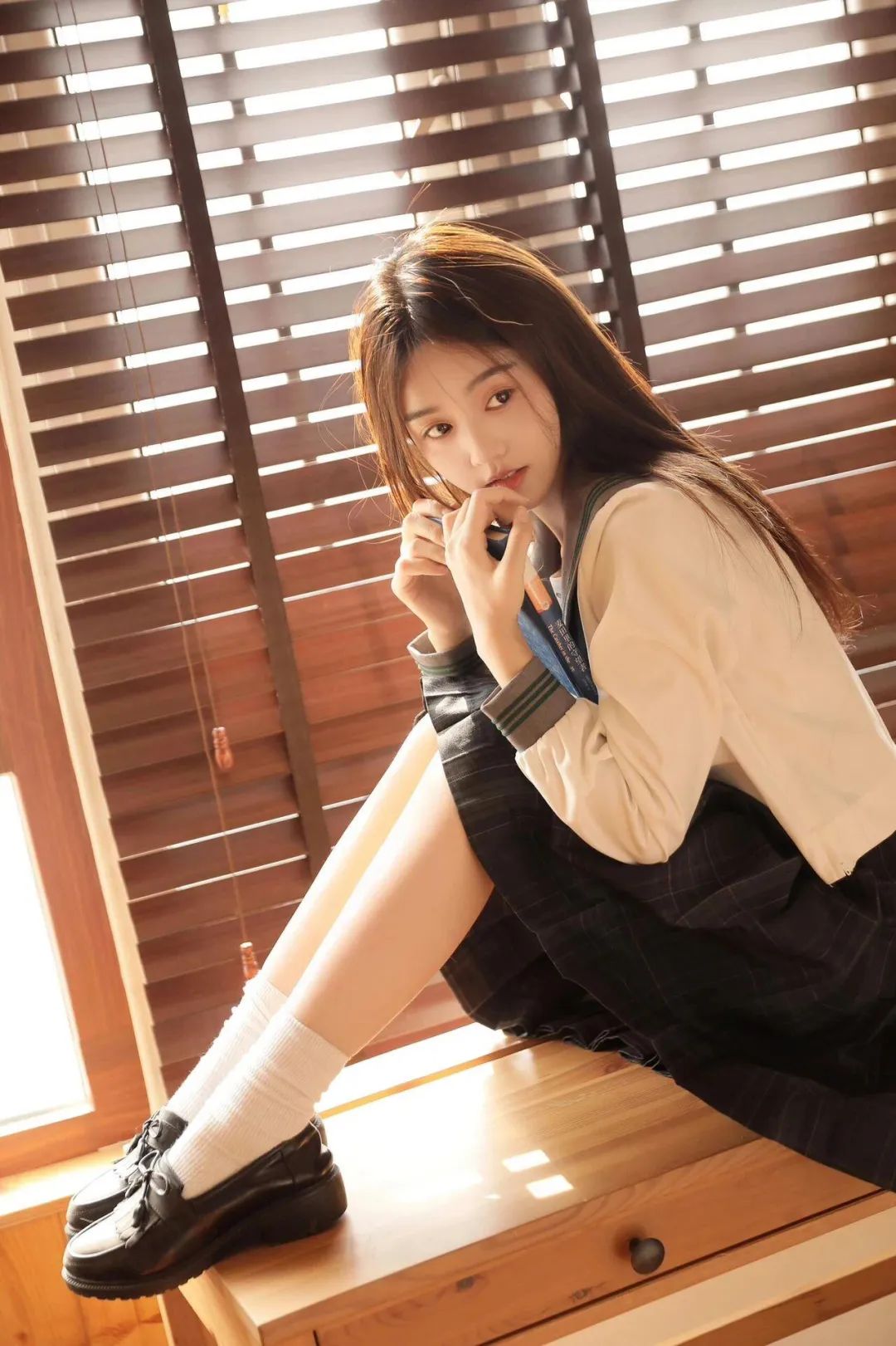 室内的温暖与 JK 制服的青春相遇。那裙摆轻扬,仿佛留住了秋日的每一丝微风,每一帧都是时光的情书。