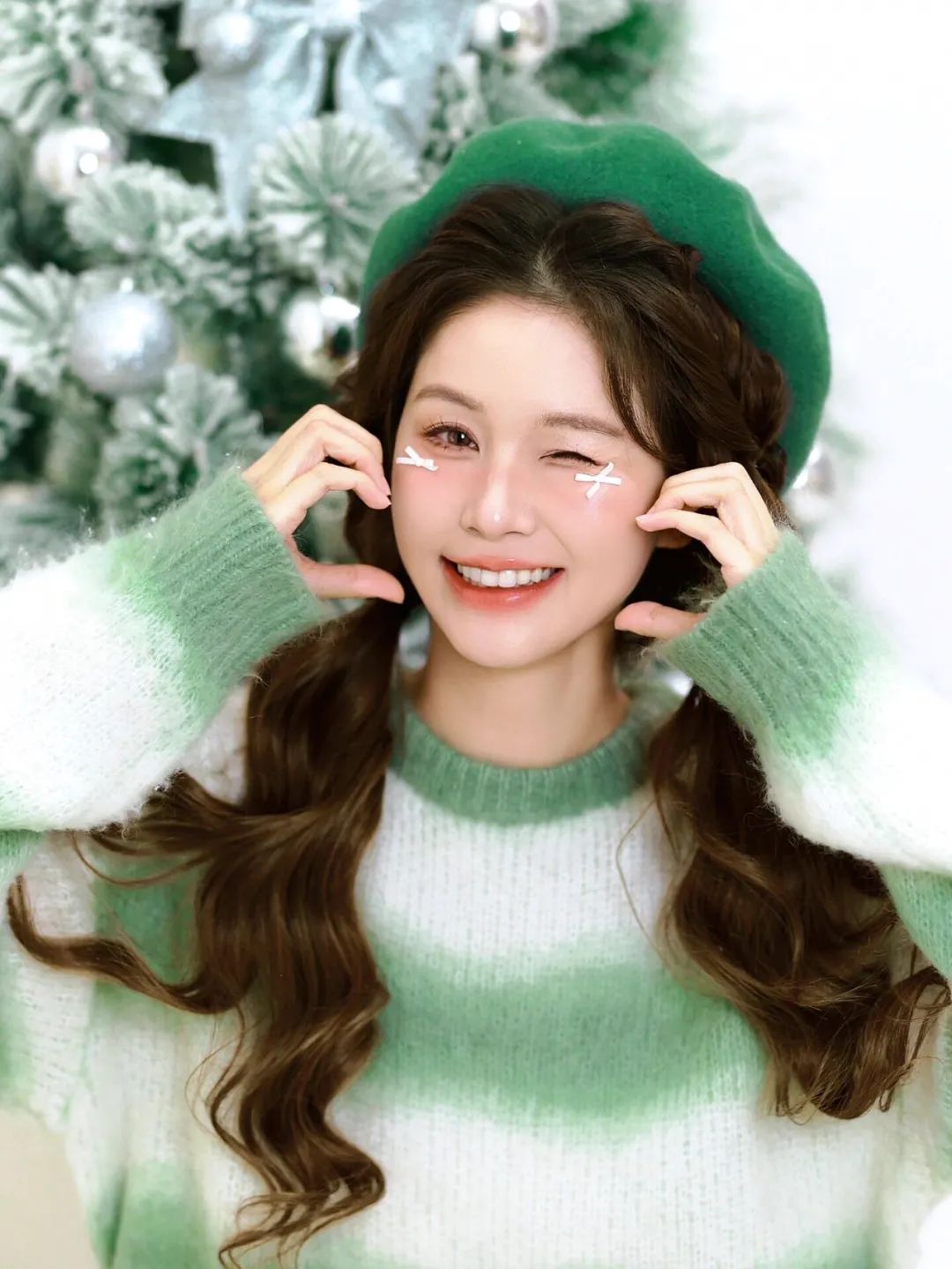4. 倚靠物体🪑:找个绿色的物体倚靠,比如圣诞树、绿植等,增添画面的趣味性🤩。