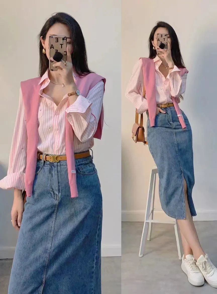 01 牛仔半身裙➕衬衫 减龄又时髦
