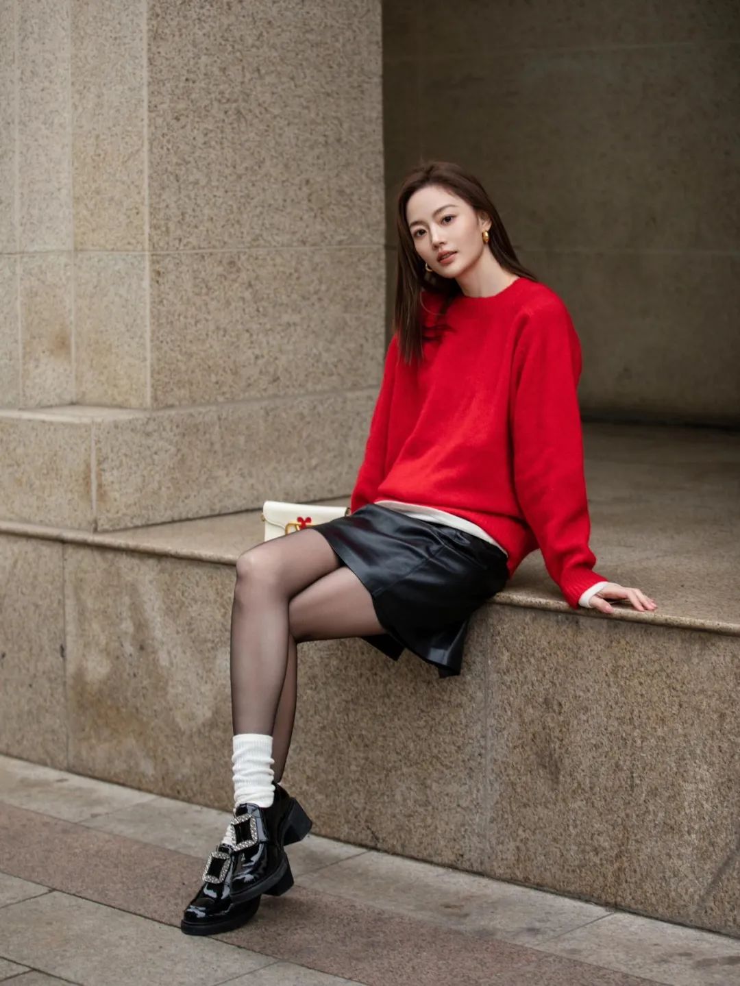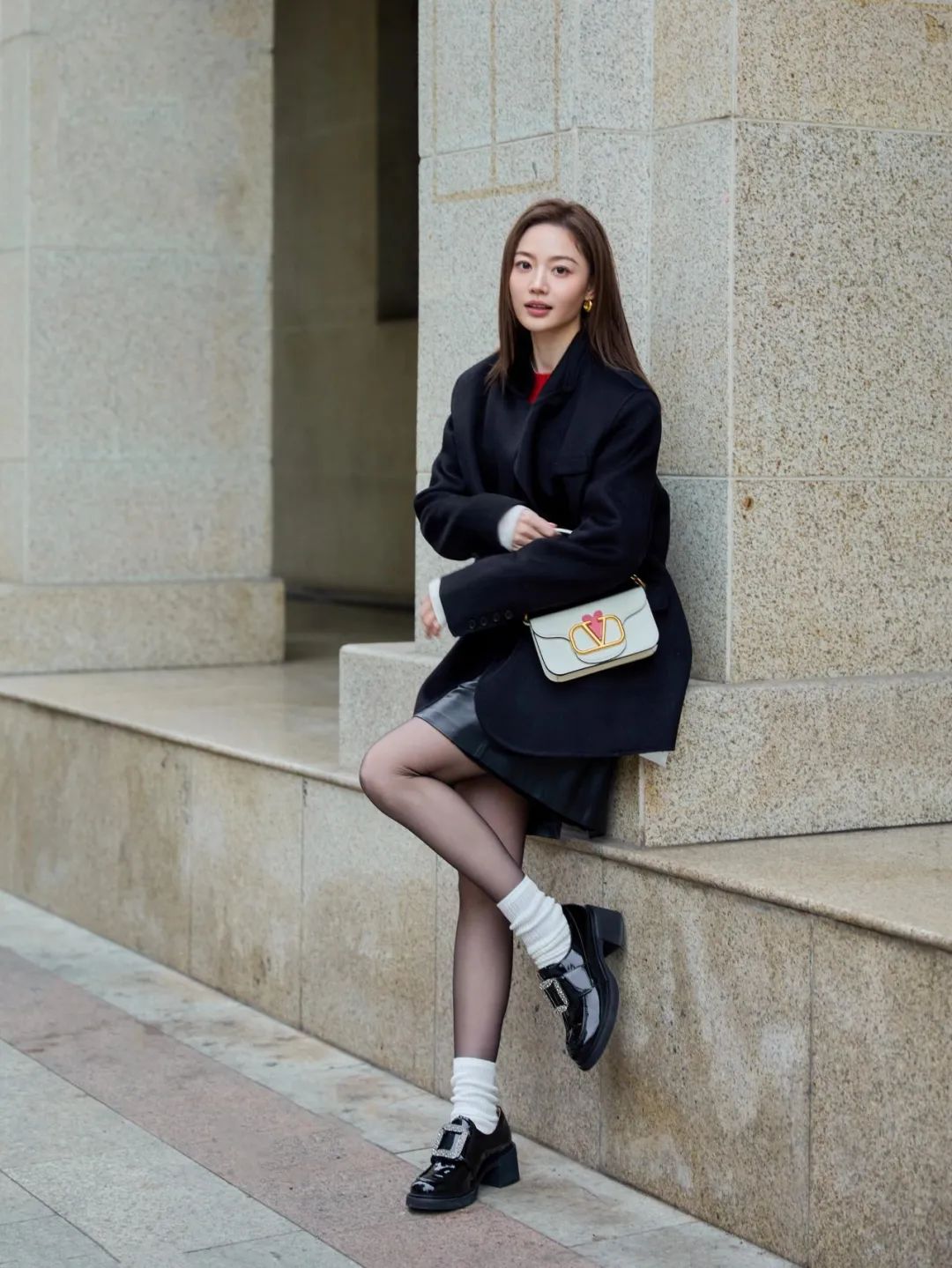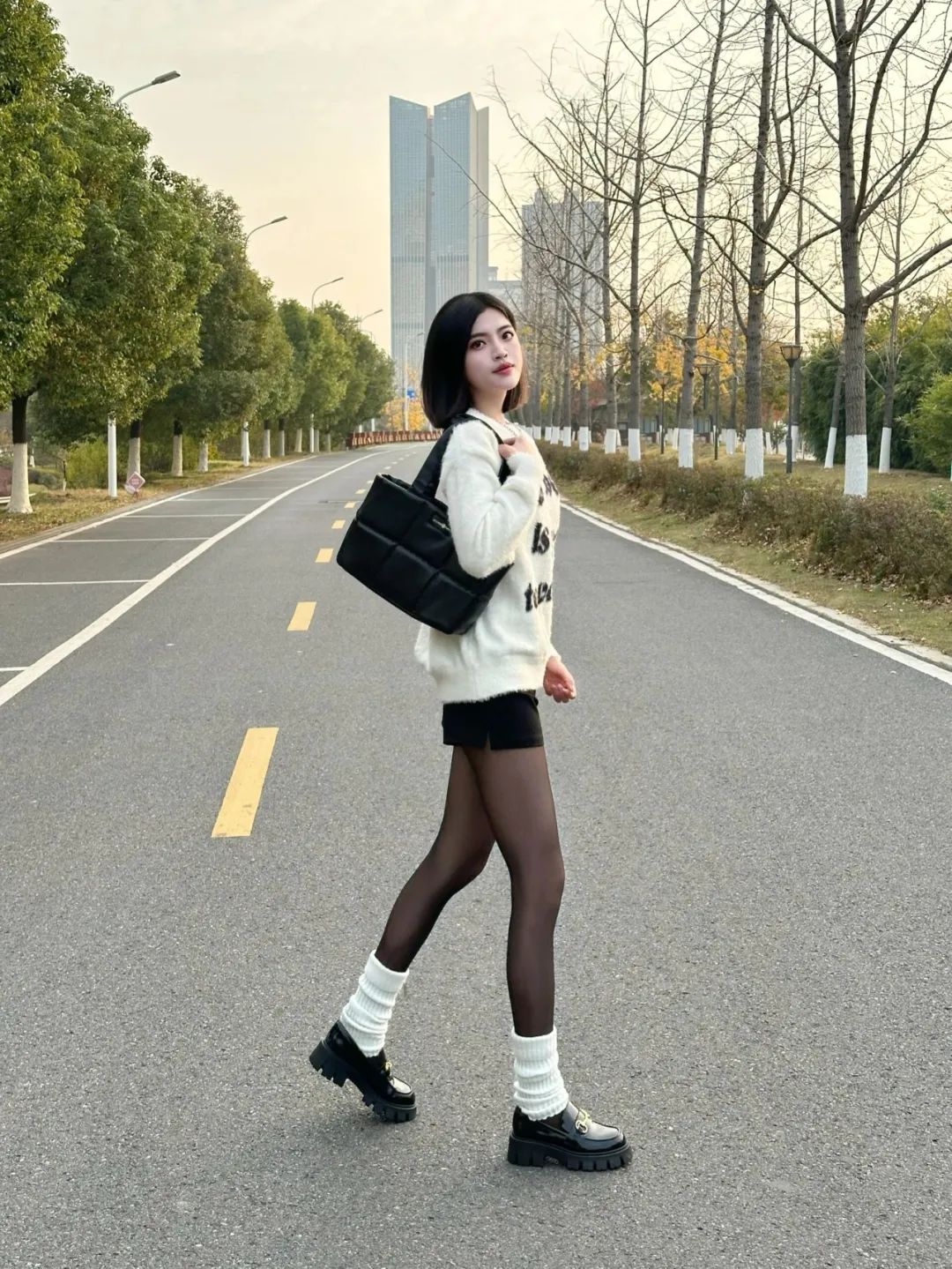 “乐福鞋+堆堆袜”黑白撞色好好看,百搭又舒适!