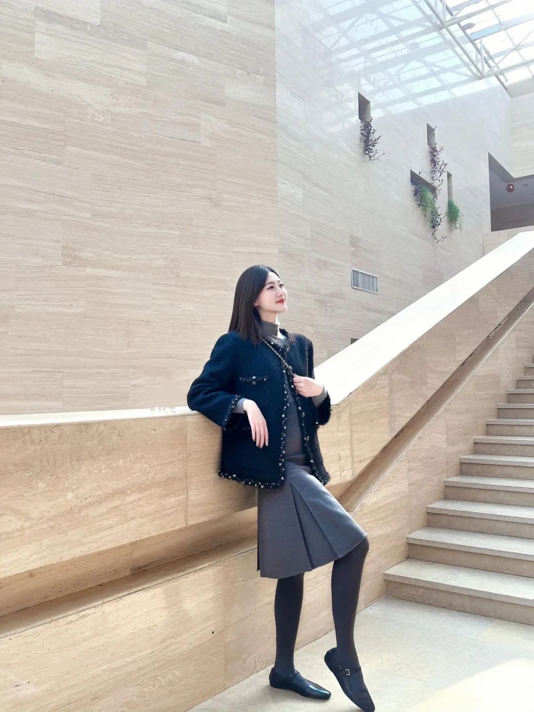 “小香风+裙子+裤袜”,上班这样穿时髦又高级!