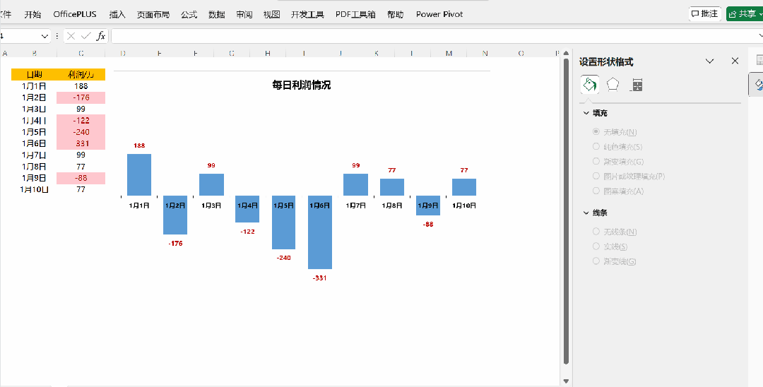 Excel图表制作:Excel这十大图表制作技巧(上),每一个都是精华! 艺帆风顺 发布于 2025-04-18 36 次阅读 职场工作中,Excel图表也扮演着至关重要的角色。一个精心设计的图表不仅能够清晰地传达数据背后的信息,更能增强说服力和显示出你的专业性。今天,我们先看下五个高效图表制作技巧,帮助你在数据可视化的道路上事半功倍。一、必知必会的图表制作快捷键Ctrl+QCtrl+Q是Excel中一个非常实用的快捷键,它可以帮助用户快速地进行数据分析和图表制作。这个快捷键一定要掌握,真的非常实用。操作方法非常简单,选择你要制作图表的区域,然后按下Ctrl+Q,即可跳出“快速分析”的窗口。接下来,选择您需要的图表类型,如簇状柱形图、折线图、堆积柱形图等就行了。除了图表制作,其实你也可以发现Ctrl+Q调出的“快速分析”窗口,还提供了其他多种数据分析工具,比如格式化、汇总、表格、和迷你图。其中表格点击后,再点击空白数据透视表,即可对所选区域透视。Ctrl+Q这个快捷键是不是非常方便呢?二、柱形图的按照正负值自动填充设定的颜色工作中,领导会要求我们对柱形图按照正负值进行颜色区分,如果你还在一个点击处理,那太慢了。而且后面要是数据变了,还得重新编辑,不仅慢,而且容易出错。而如果你知道Excel中“以互补色代表负值”这个功能,那将大大提升你的工作效率。操作很简单,右点击柱形图,点击设置数据系列格式,选择填充与线条,然后找到填充,点击“以互补色代表负值”,再分别设定正值、负值的颜色就行了。是不是非常棒?三、折线图添加垂直线有时候为了美观或者领导要求看的更加便捷,可以对折线图进行垂直线添加操作。步骤非常简单:点击图表,然后点击菜单栏上面的图表设计,再点击线条,最后点击垂直线即可!是不是更好看了点呢?四、引用单元格的值有时候我们需要增加或者更换其他的数据标签,比如上面的每日完成率数据中,我们假设完成率在80%以上的为优秀,60%以下的为不合格,其余的为合格。如果我们想在图表中显示它的优秀合格情况,就可以用到此技巧:右键点击数据标签,然后点击设置数据标签格式,点击单元格中的值,然后选择范围,最后确认就行!五、坐标轴单位设置万方法很简单:右键点击数据标签,然后点击设置数据标签格式,找到标签选项,然后下拉到最后找到数字,再在类别中选择自定义,最后再格式代码中输入:0!.0,"万",即可显示万了!今天就分享到这里了,如果大家觉得有帮助的话,就点下下面的小爱心哦。欢迎大家关注留言交流。