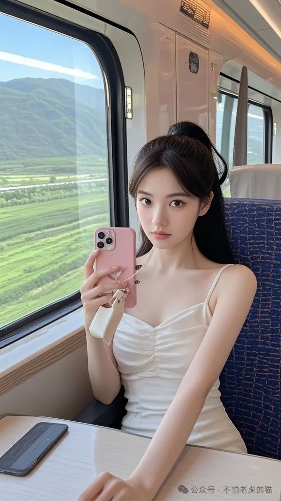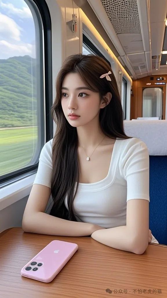 高铁上的小姐姐,明眸皓齿,肌肤雪白