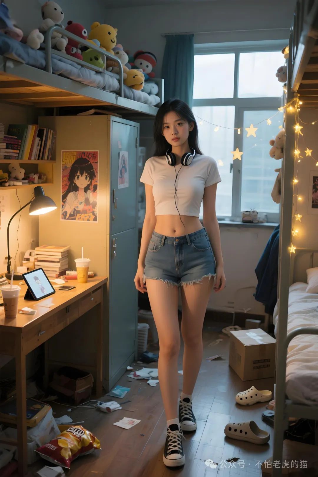 小文推开小岚的房门,她坐在凳子上,戴着耳机,侧着身子看着小文,似乎有点不高兴。
