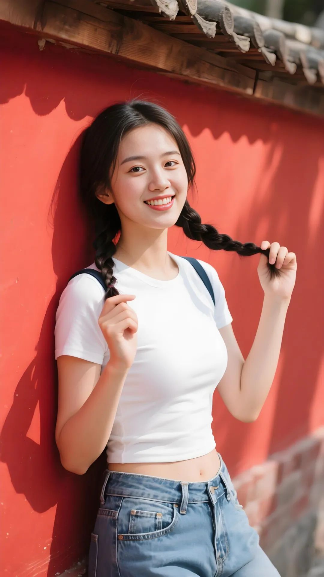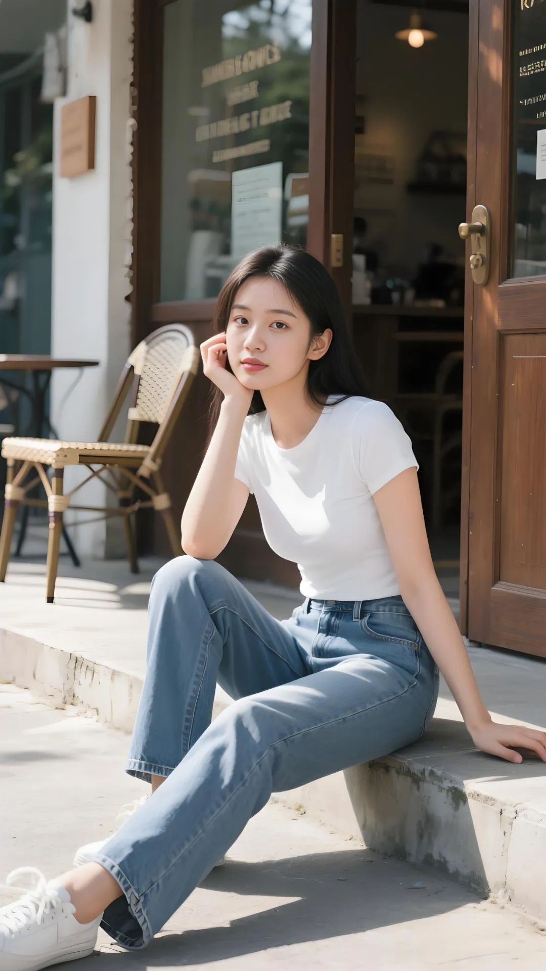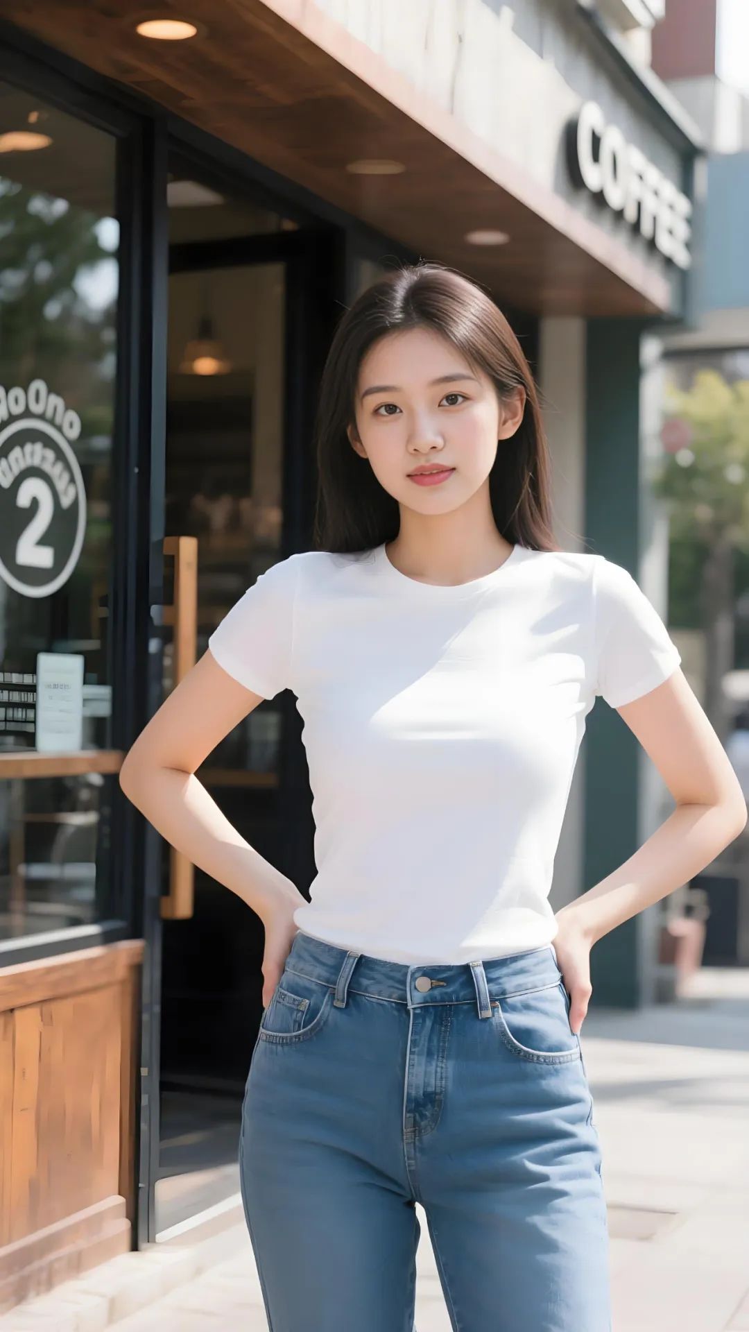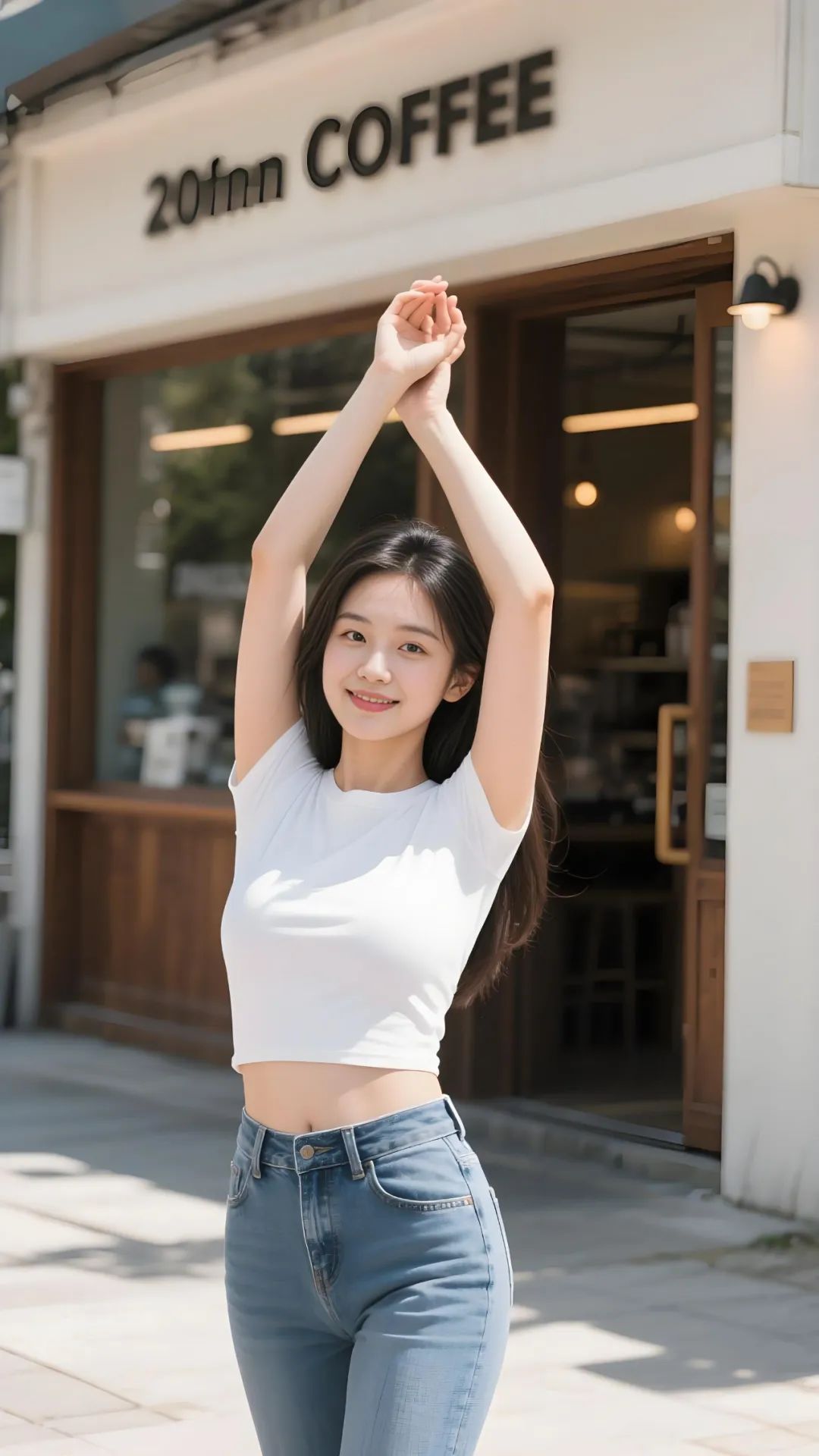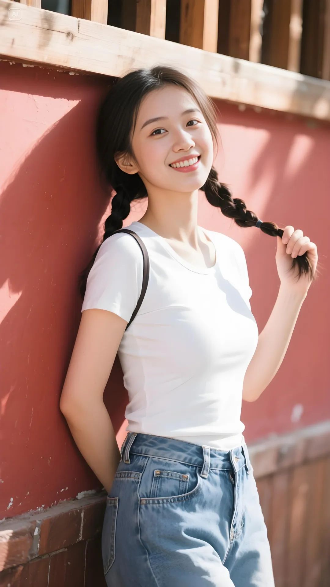白T牛仔裤拍照姿势大全,阳光气质,身材曼妙 艺帆风顺 发布于 2025-04-21 33 次阅读 夏天快到了,穿上白色体恤搭配牛仔裤,能展现女性的阳光美丽,还能让身材看起来更好。学会下面几种拍照姿势,能把女友拍得更好看,女友看见如此美丽的自己,一不小心就会心花怒放,给你一个大大的奖励。在咖啡馆门口,双手叉腰,看着镜头。双手举过头顶交叉,看着镜头微笑。两腿还可以交叉站立。坐在咖啡馆门口的台阶上,一手托腮,一手自然地放在地上,看着镜头。缠两个马尾辫子,靠着红墙,两手分别拉着辫子或只用一只手拉着辫子,开心大笑。一只手叉腰,看着镜头,含蓄地抿嘴而笑。双手插进牛仔裤的兜里,抬起一条腿,单腿站立,表情自然,看着镜头。大幅度转身,一只手自然放置,一只手扶在腰上,上半身稍微往前倾。这个姿势能优化身材曲线。