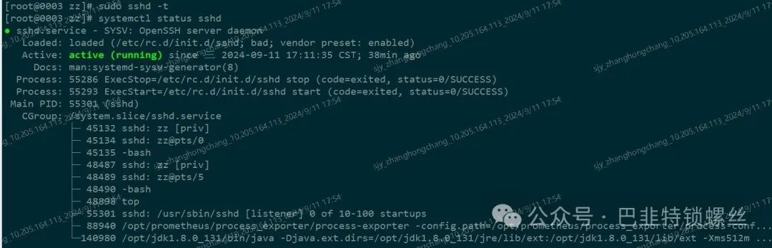 校验配置文件:sudo sshd -t