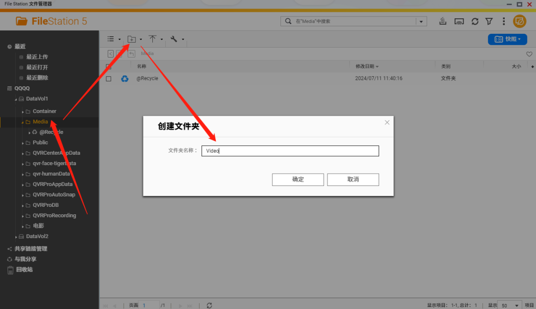 接着在【Media】共享文件夹下创建【video】文件夹。