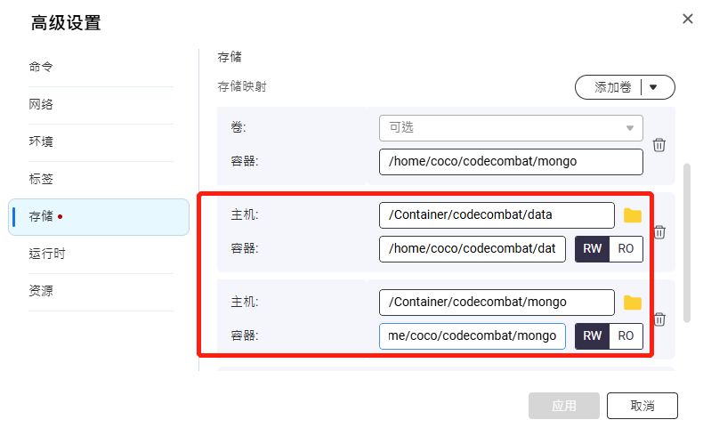 接着进入【高级设置】,点击【存储】添加存储映射。