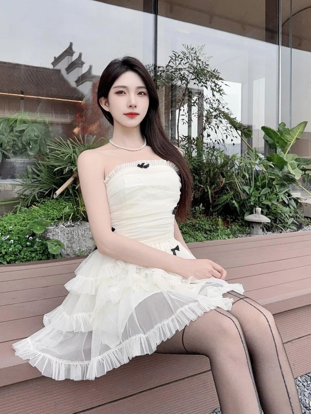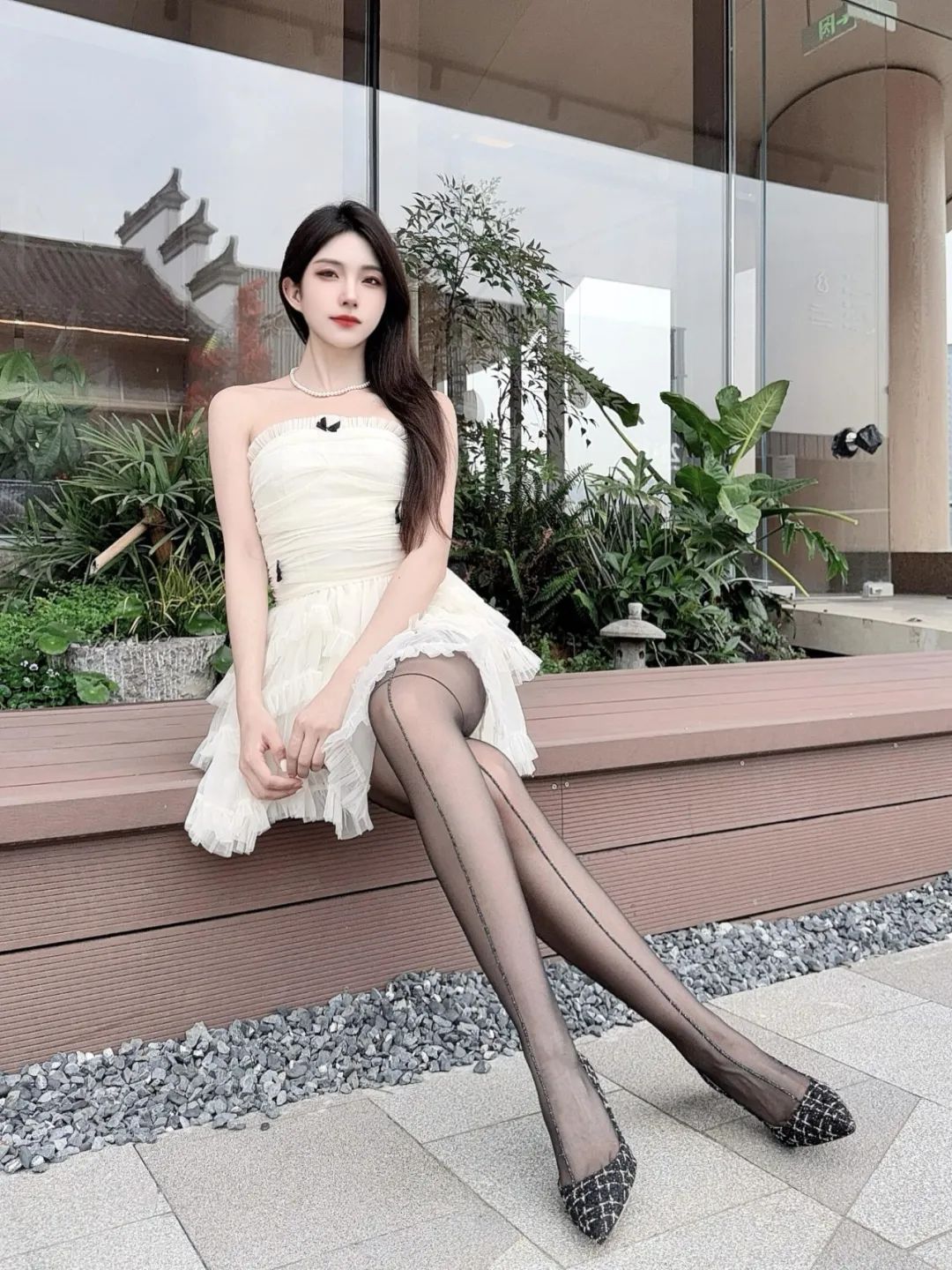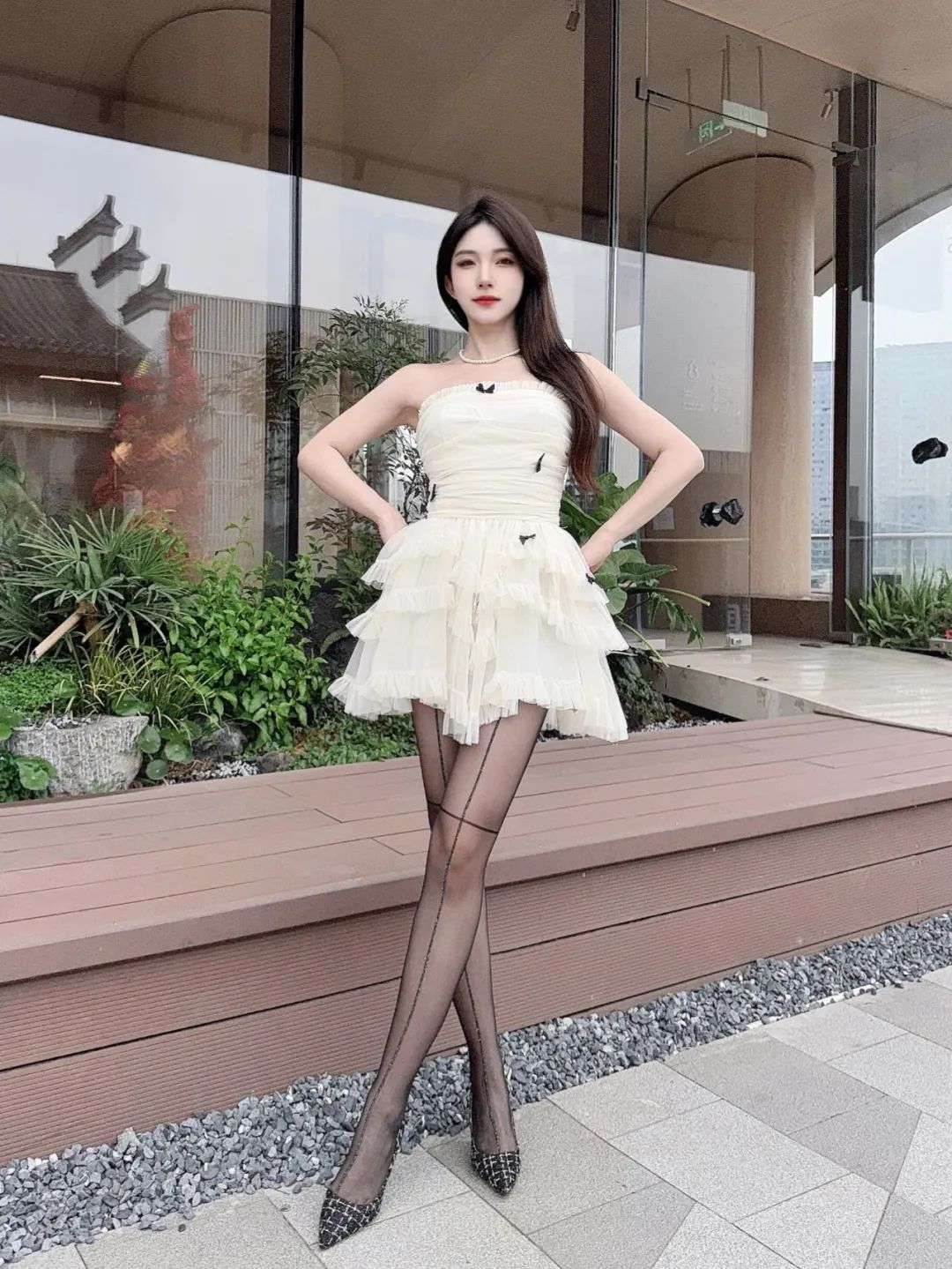 “白色连衣裙+条纹袜+”,气质出众,自信大方的时尚魅力