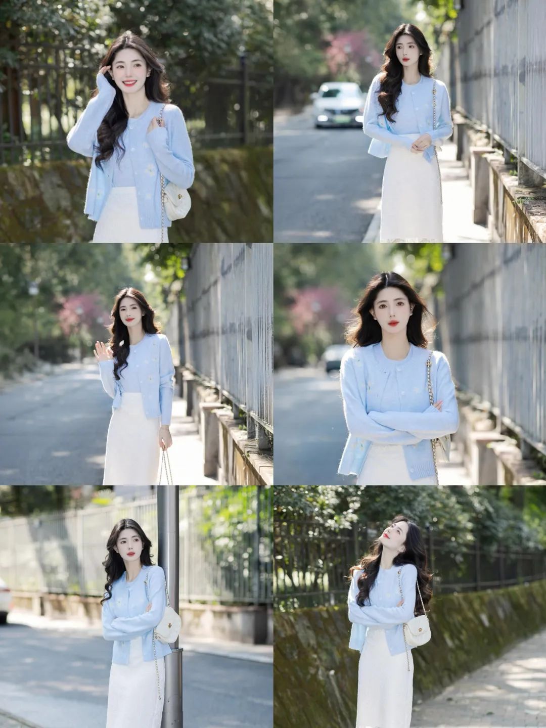 想在街头拍出刷爆朋友圈的美照吗?其实不用复杂的技巧和昂贵的设备,只需一些简单又实用的拍照姿势,搭配上合适的穿搭,就能轻松出片!今天就带大家看看浅蓝色针织衫与白色蕾丝裙的绝美搭配,以及在街头拍出氛围感大片的姿势,赶紧码住学起来~