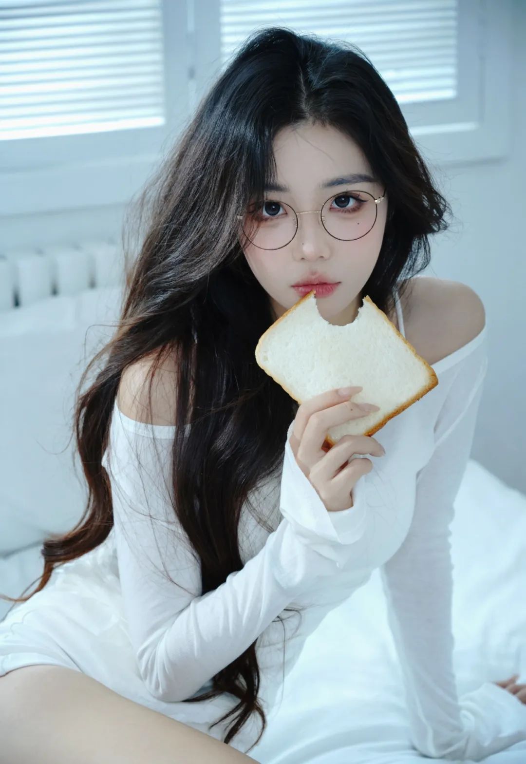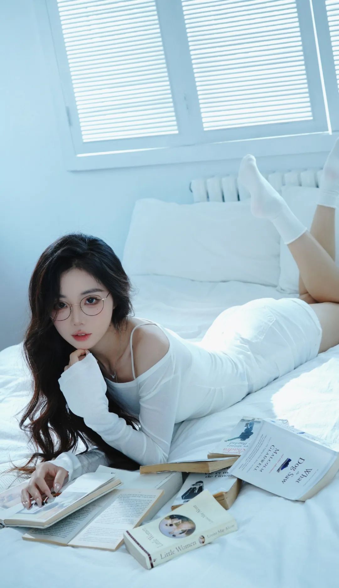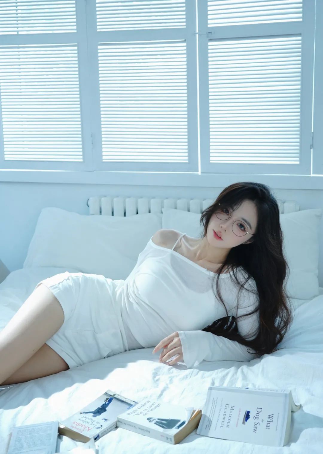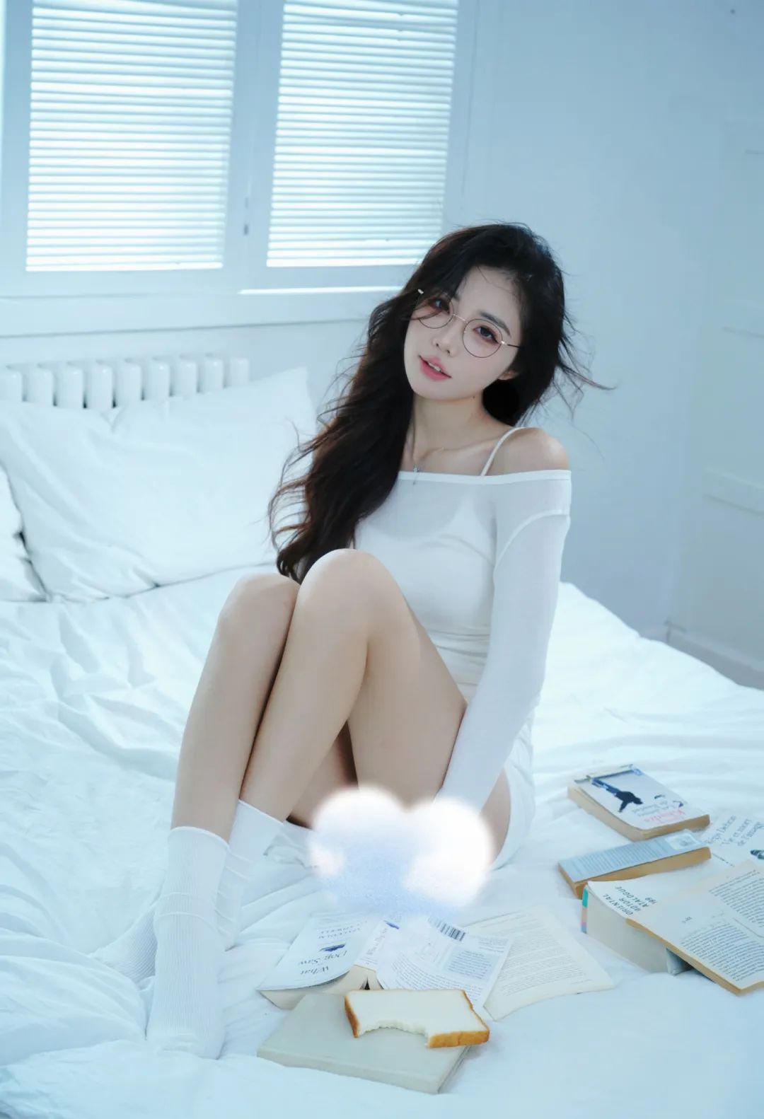 漂亮可人 眼镜妹!白色紧身 超短裤!