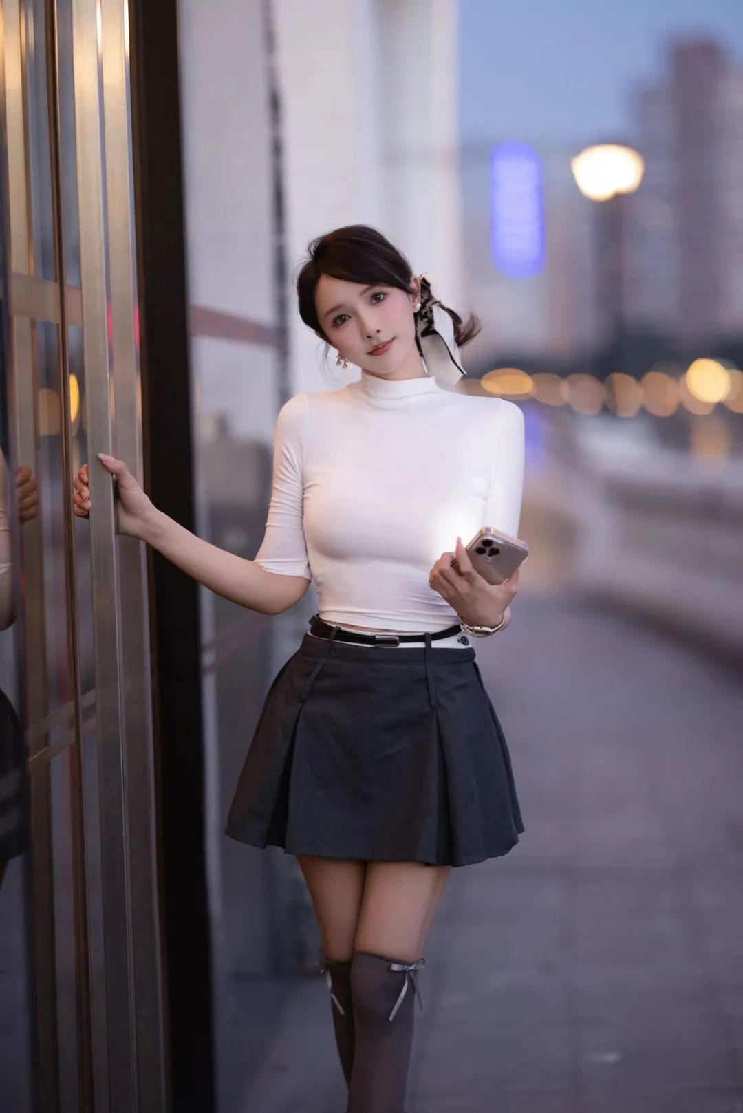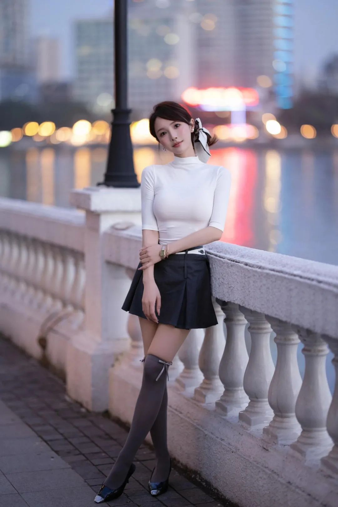 “白T+半裙+过膝袜”,温柔大方,可御可甜的时尚魅力