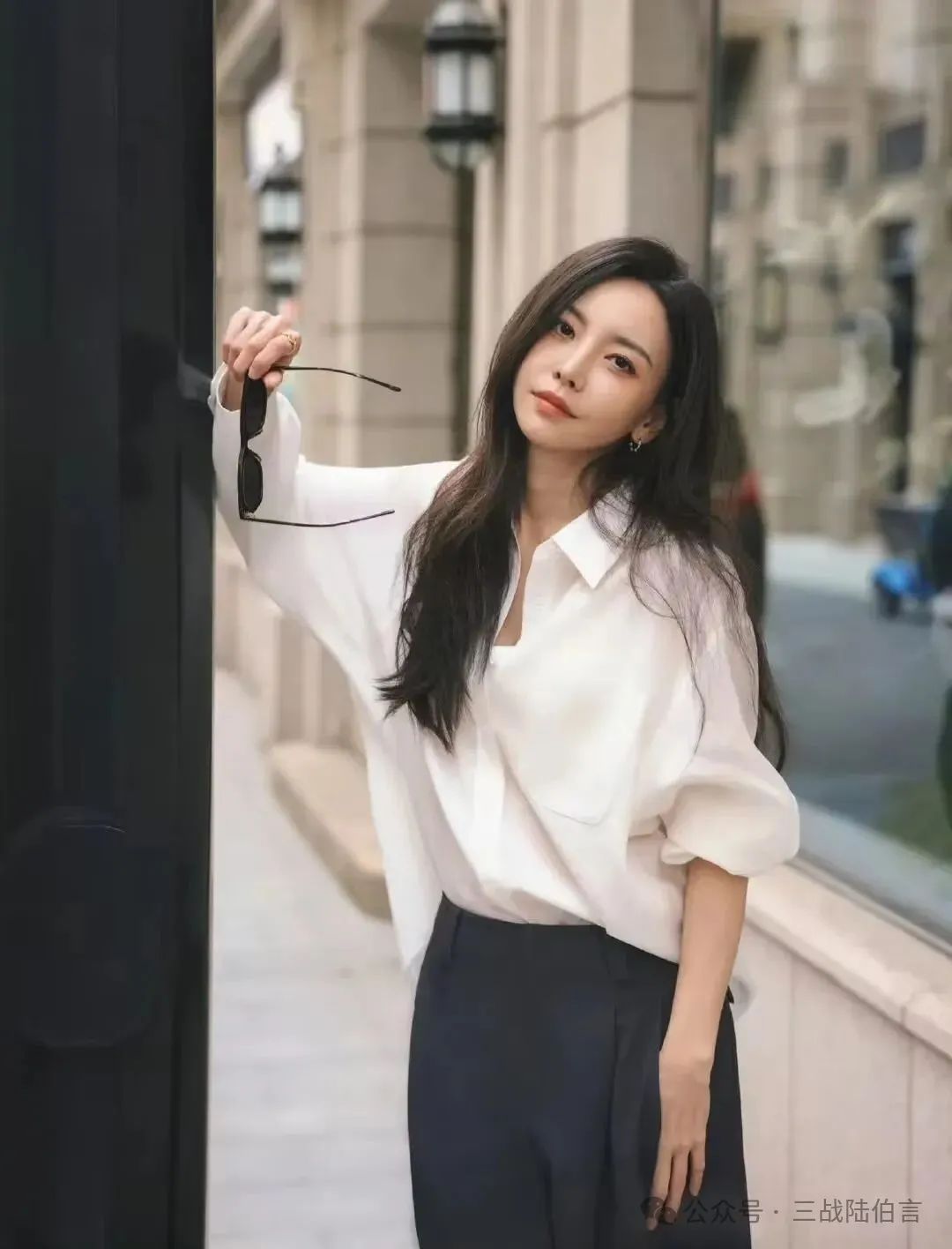 最近刷手机的时候,被于文文的一组街拍惊艳到了。没有浮夸的造型堆砌,没有刻意的凹姿势,她就穿着最普通的白衬衫往街头那么一站,整个人就像晨雾里绽放的栀子花,清清爽爽却让人移不开眼。这让我想起时尚圈那句老话:“真正会穿的人,能把白衬衫穿出千种风情”,而于文文恰好给我们上了堂生动的时尚课。最让人移不开眼的,是那张倚在红砖墙边的抓拍。午后三点钟的日光斜斜地铺在她身上,把白衬衫染成温润的珍珠色。她随意地把墨镜搭在窗台上,几缕发丝被微风撩起,在锁骨处荡出好看的弧度。这时候突然想起张爱玲说过的话:“细节往往是和美畅快,引人入胜的”,她解开的袖扣恰好露出纤细的手腕,微敞的领口若隐若现的银色锁骨链,每个细节都像是精心设计过的随意。这种慵懒却不邋遢的松弛感,倒让我想起最近ins上很火的那句话:“最高级的性感,都是漫不经心的”。另一个画面里,她双臂交叠靠墙而立。明明是最简单的站姿,却像武侠小说里收剑入鞘的女侠,带着三分飒爽七分笃定。这时候的白衬衫突然就有了铠甲般的质感,黑色烟管裤把腰线提到恰到好处的位置,衬得整个人像株笔直的白杨。最妙的是她垂落的发丝,在凌厉的轮廓里添了抹温软。这种刚柔并济的视觉冲击,倒应了时尚博主常说的"矛盾美学"——当硬朗遇上柔软,反而碰撞出更持久的余韵。转角的第三幕像是电影里的慢镜头。她侧身回望的瞬间,衬衫下摆扬起温柔的波浪,发丝在风里编织成流动的琴弦。背景里斑驳的老墙和现代感玻璃幕墙交相辉映,恍然让人分不清这是巴黎左岸还是上海弄堂。这时候突然明白为什么说"美人在骨不在皮",她身上那份舒展自在的气场,让再简单的穿搭都成了艺术品。就像时装设计师马可说的:“衣服只是载体,真正珍贵的是穿着者赋予的生命力”。翻完这组照片,突然想起于文文在采访里说的:“穿搭就像音乐创作,重点不在乐器多昂贵,而在如何编排音符”。她确实把白衬衫这个经典单品演绎出了交响乐般的层次——慵懒的慢板,铿锵的行板,浪漫的柔板交替上演。那些被我们压在衣柜底的基础款,原来藏着这么多可能性。难怪网友都说她是"人间调色盘",总能用最简单的色彩画出最惊艳的画卷。