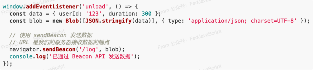 这种方式是目前在页面卸载时发送数据的最佳实践。