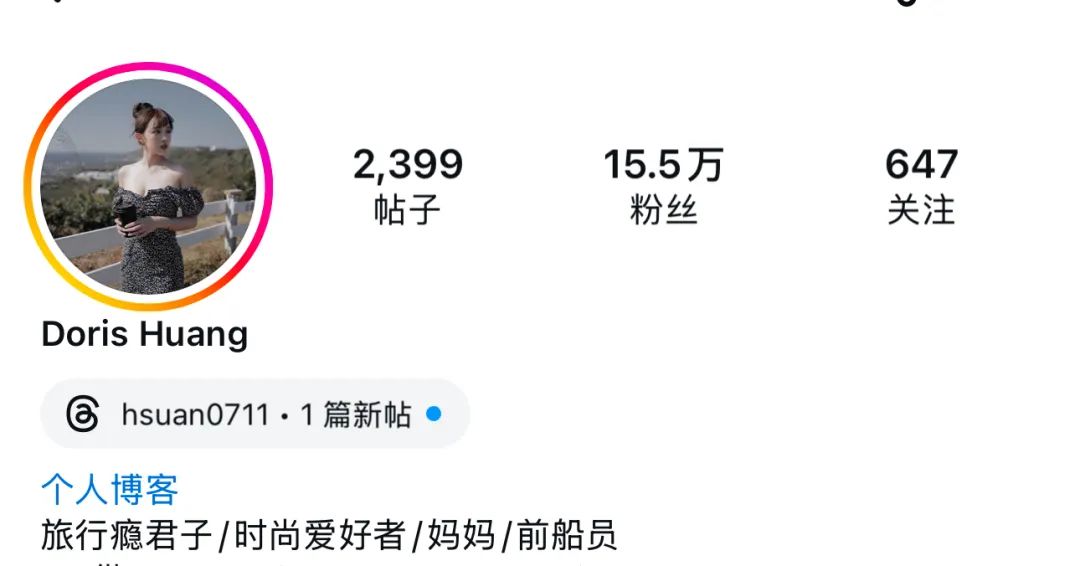 一位宝岛辣妈的穿搭风格!时尚而大方! 艺帆风顺 发布于 2025-08-08 30 次阅读 大家好,欢迎来到零点君的话不多说时刻!本文女嘉宾是一位来自宝岛的年轻辣妈,34岁是一个旅行痴迷者、时尚的爱好者,日常在社交媒体发布自己的旅行动态和时尚穿搭,话不多说上图来了解一下她吧:图片来源于Doris Huang今天就到这里,大家明天见!