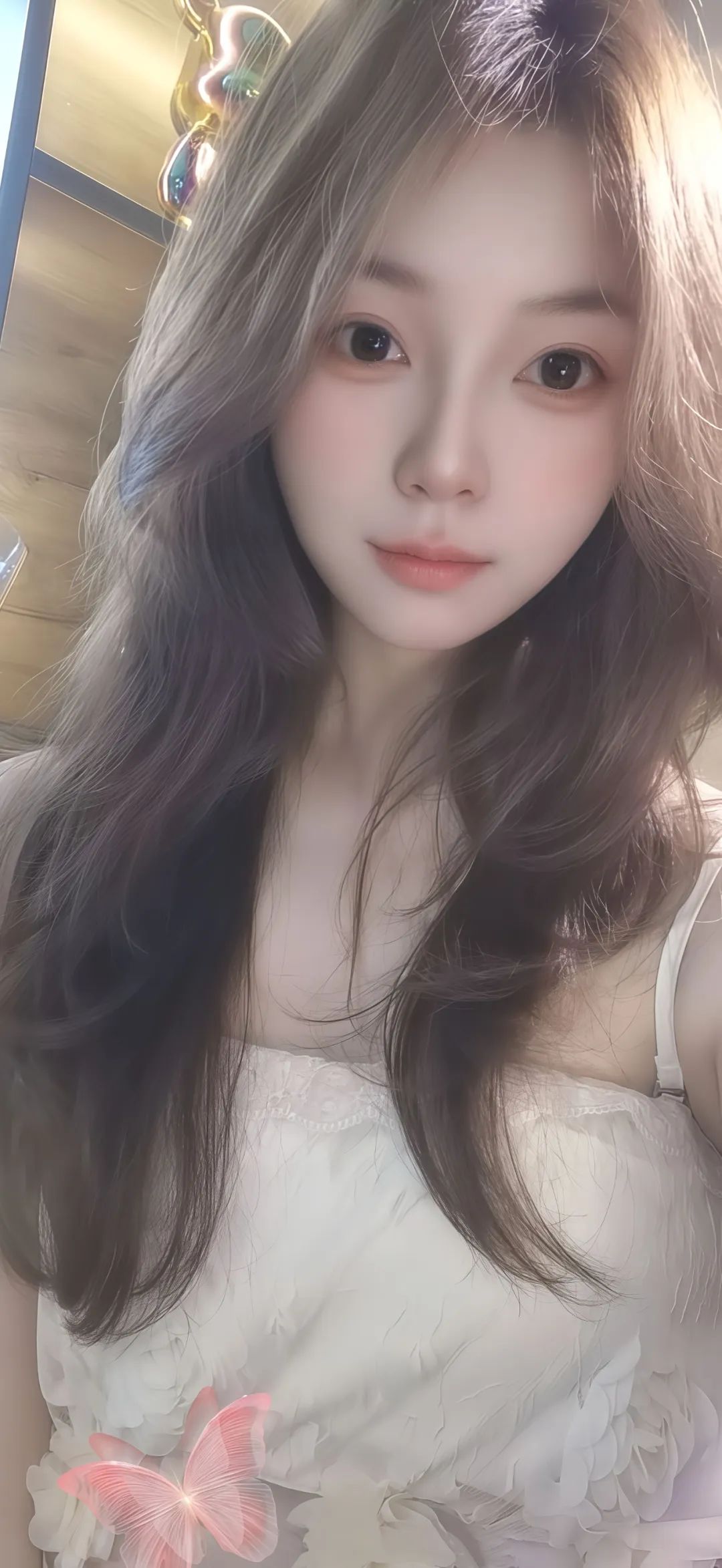 白裙棕发,清新雅致
