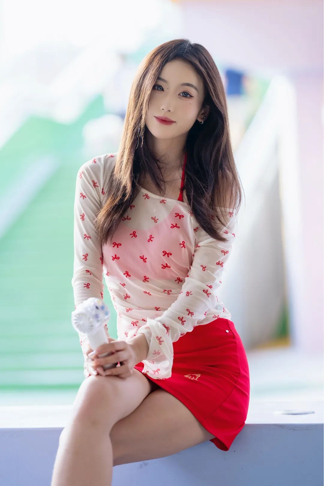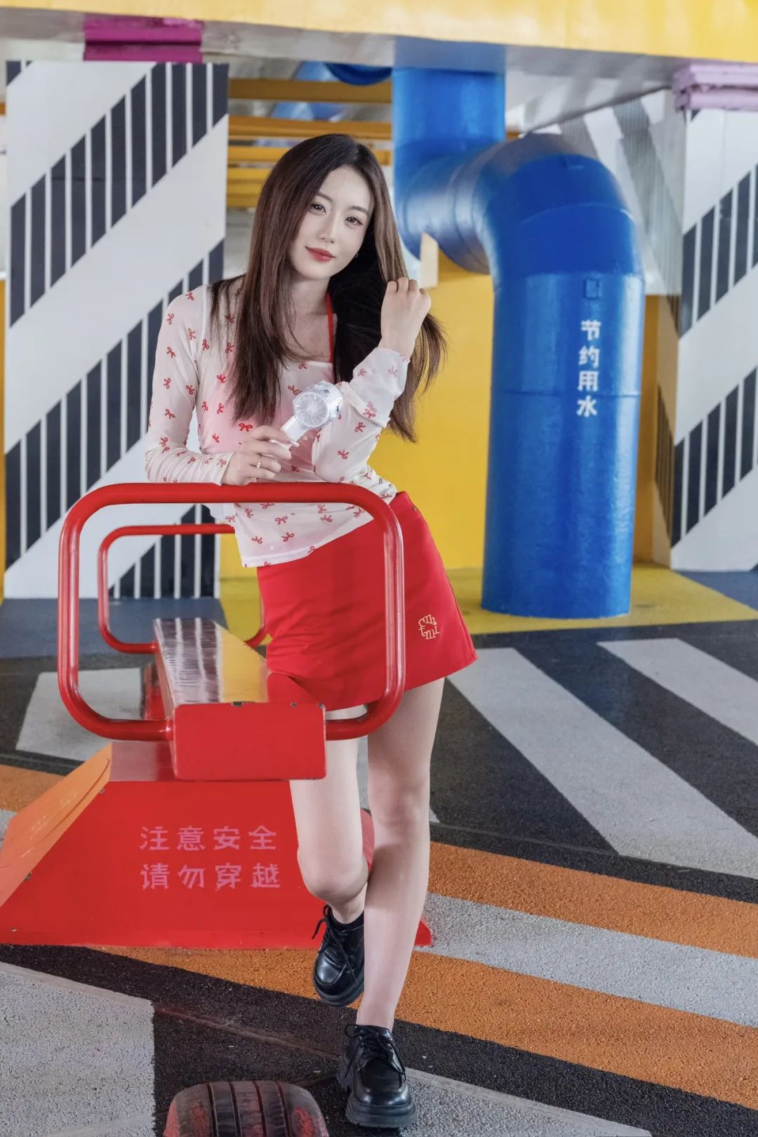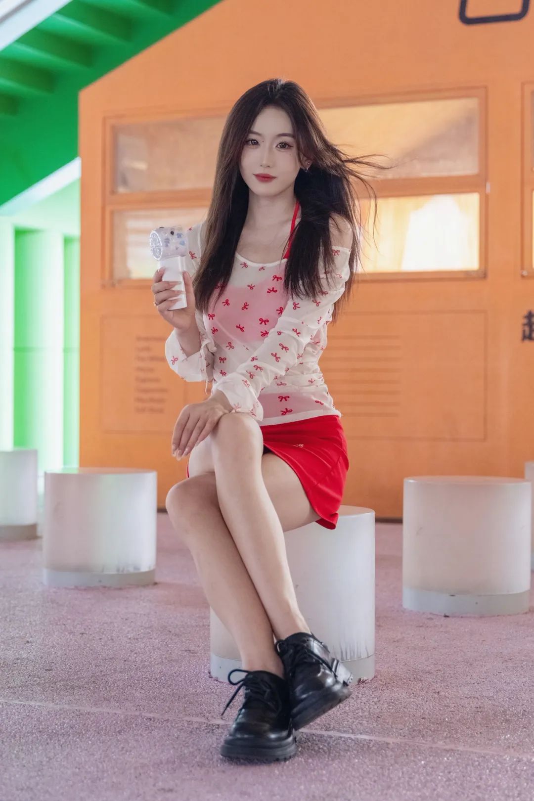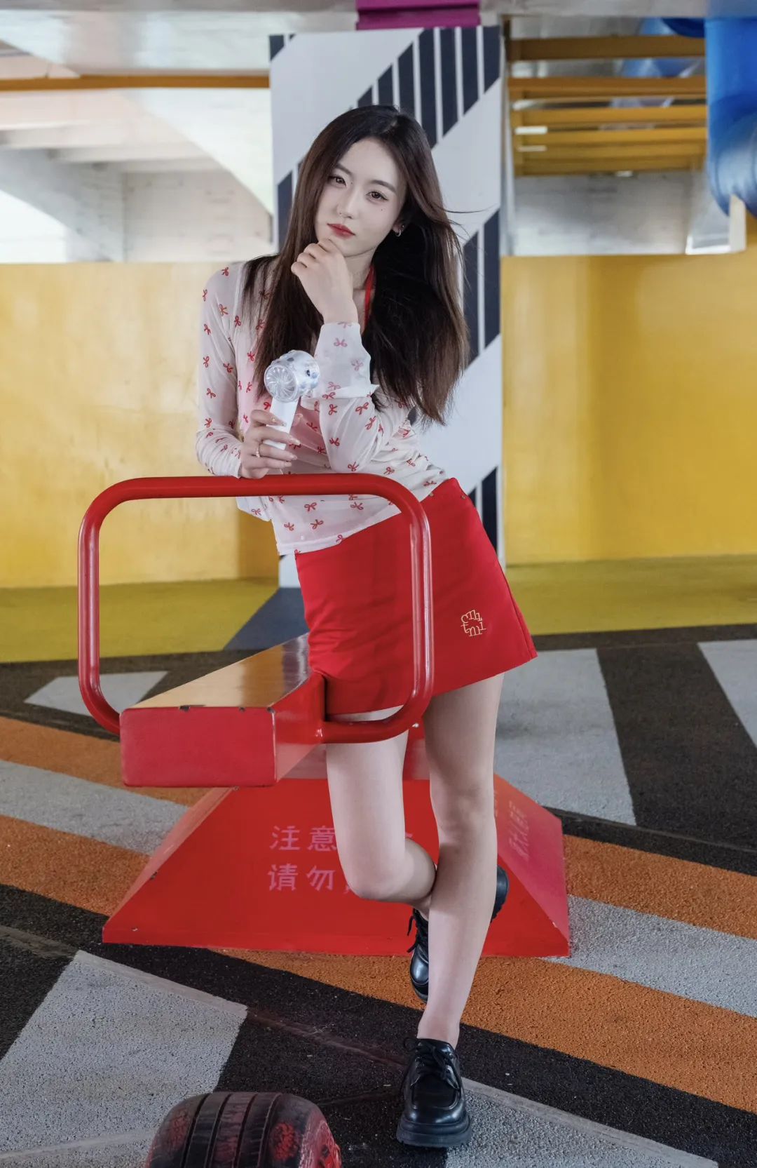 躲进公园角落,用一组照片和燥热“和解”。薄纱上衣透着凉意,红裙点亮心情,小风扇呼呼转,把暑气都吹成轻快节奏。