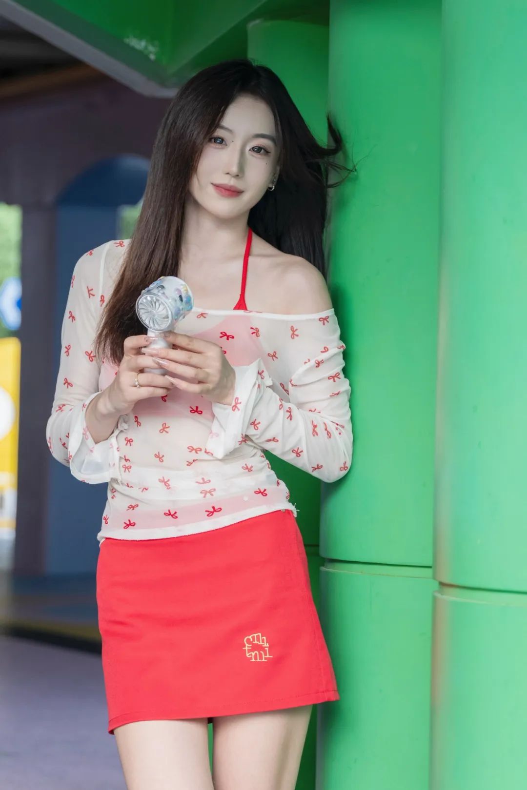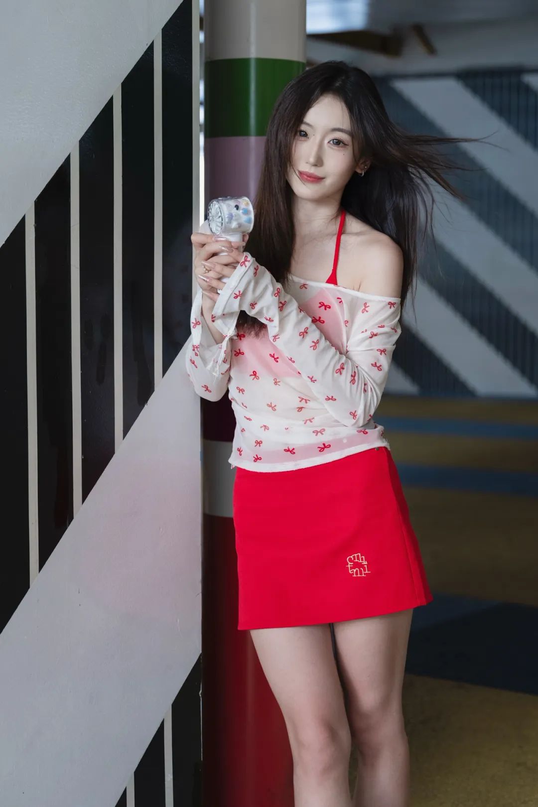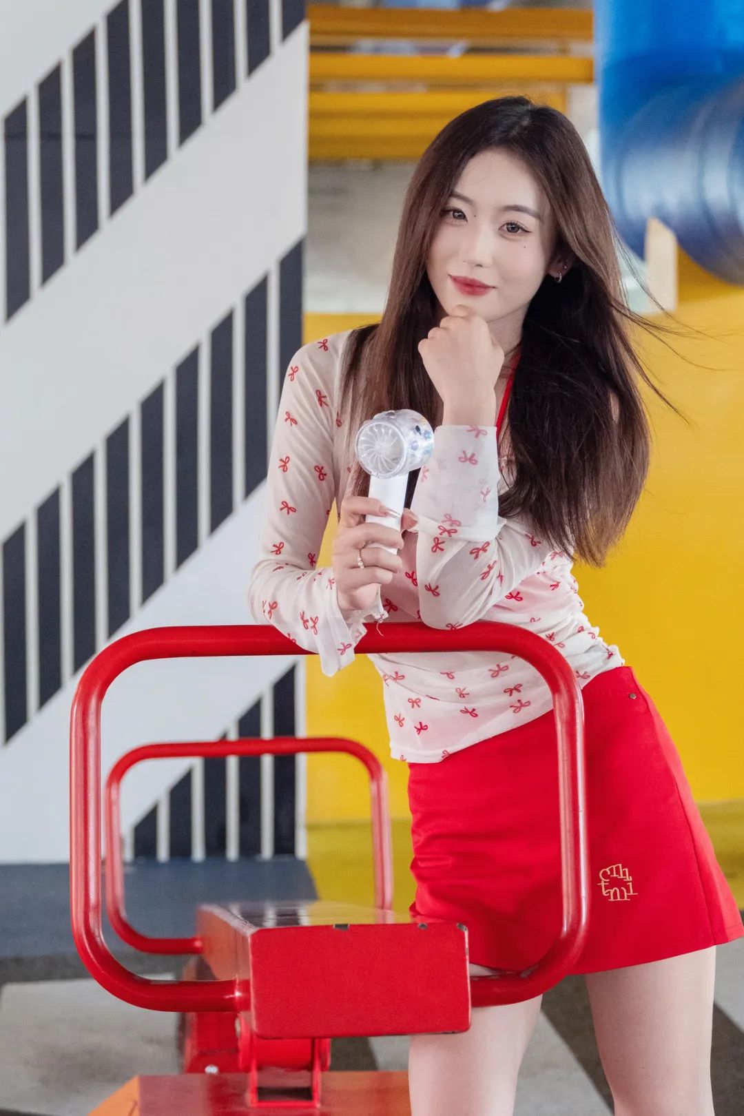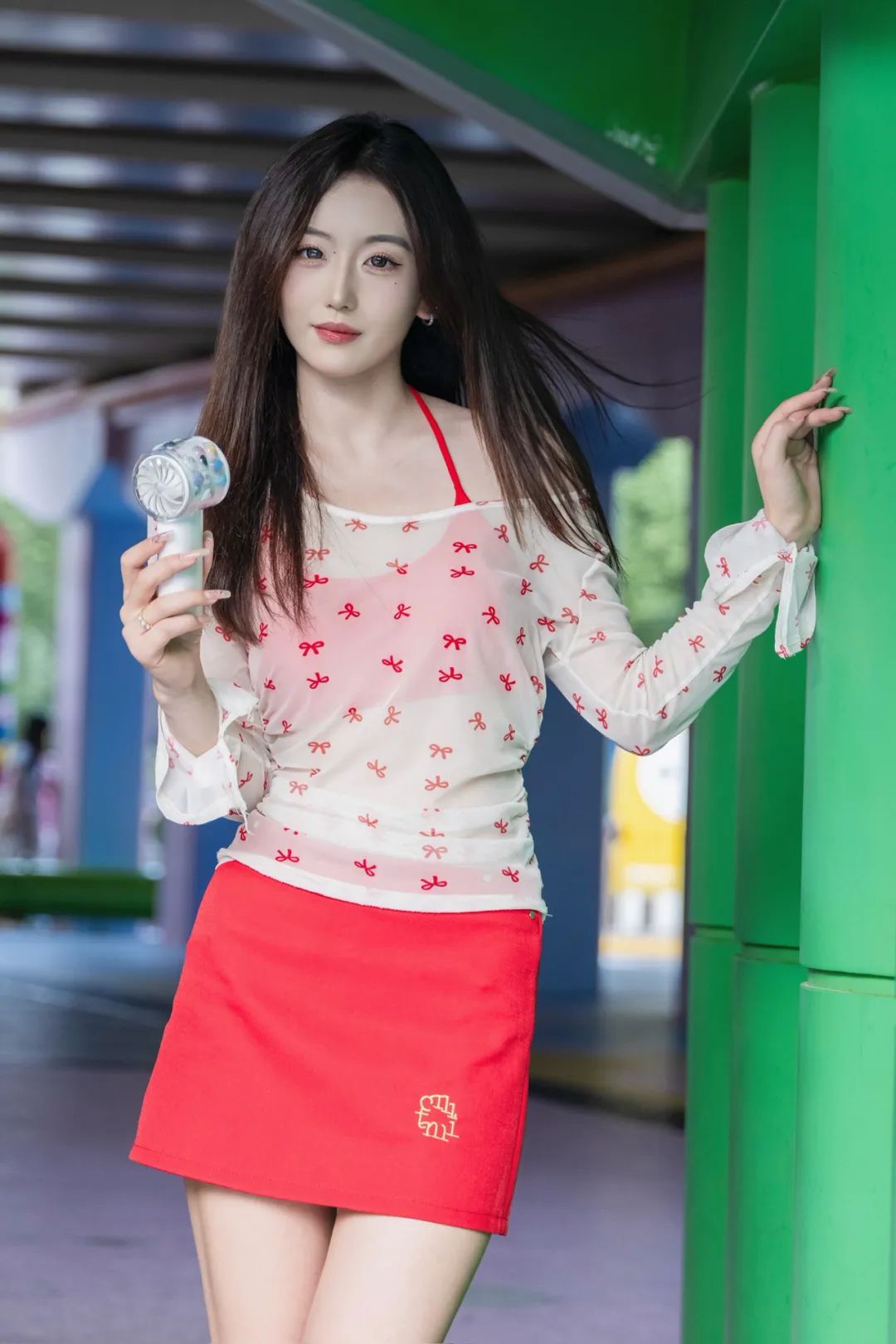 躲进公园角落,用一组照片和燥热“和解”。薄纱上衣透着凉意,红裙点亮心情,小风扇呼呼转,把暑气都吹成轻快节奏。