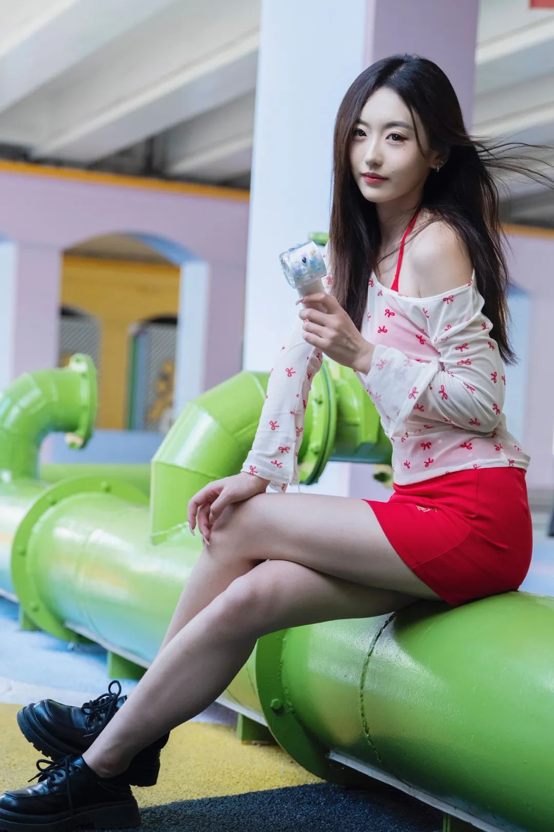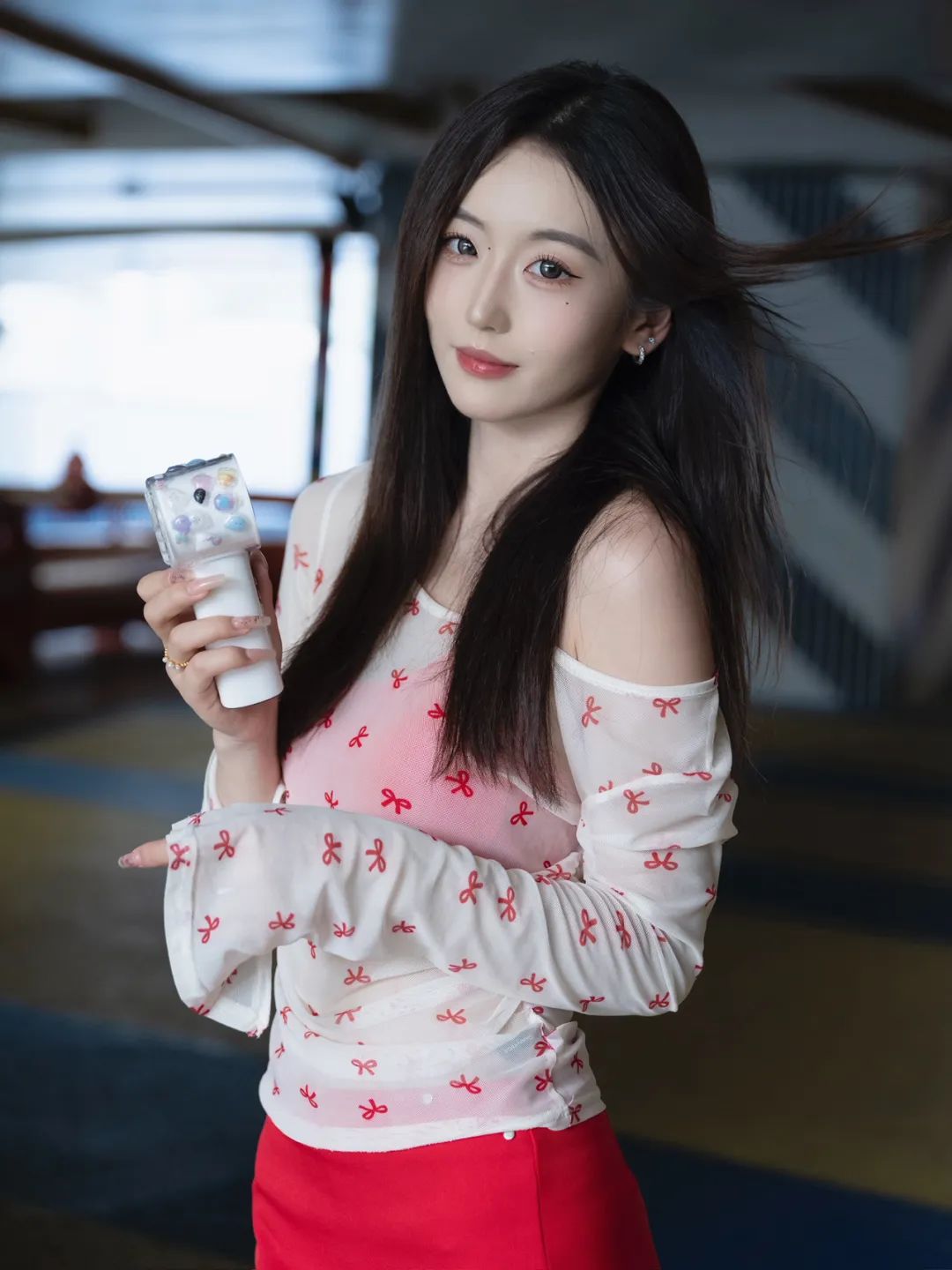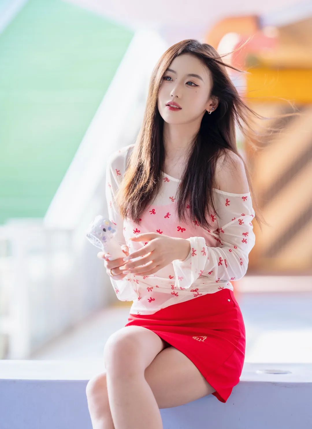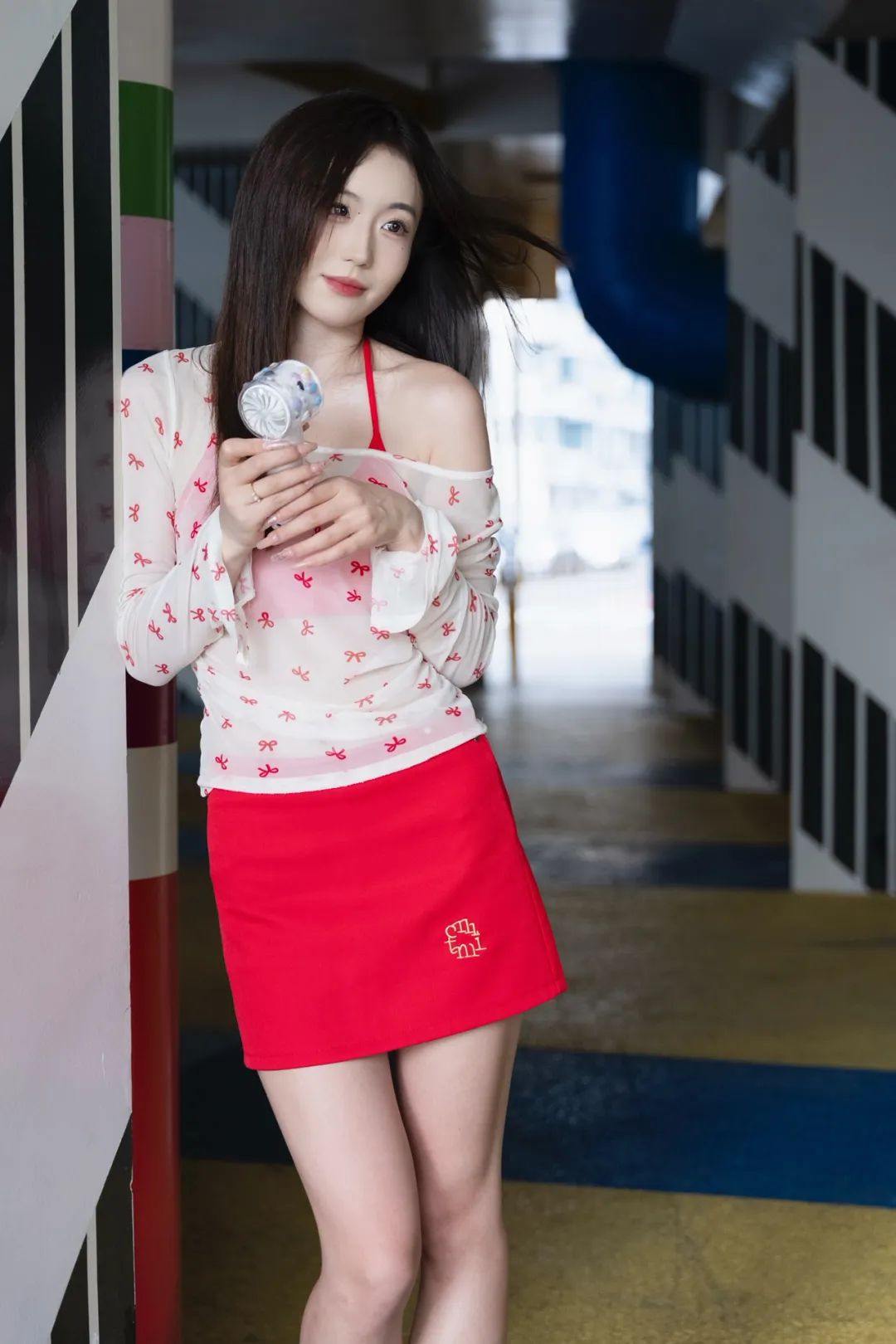 躲进公园角落,用一组照片和燥热“和解”。薄纱上衣透着凉意,红裙点亮心情,小风扇呼呼转,把暑气都吹成轻快节奏。