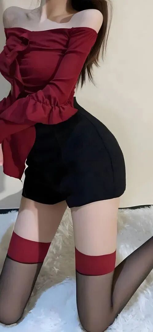 甜辣又吸睛+红色开衫+白背心