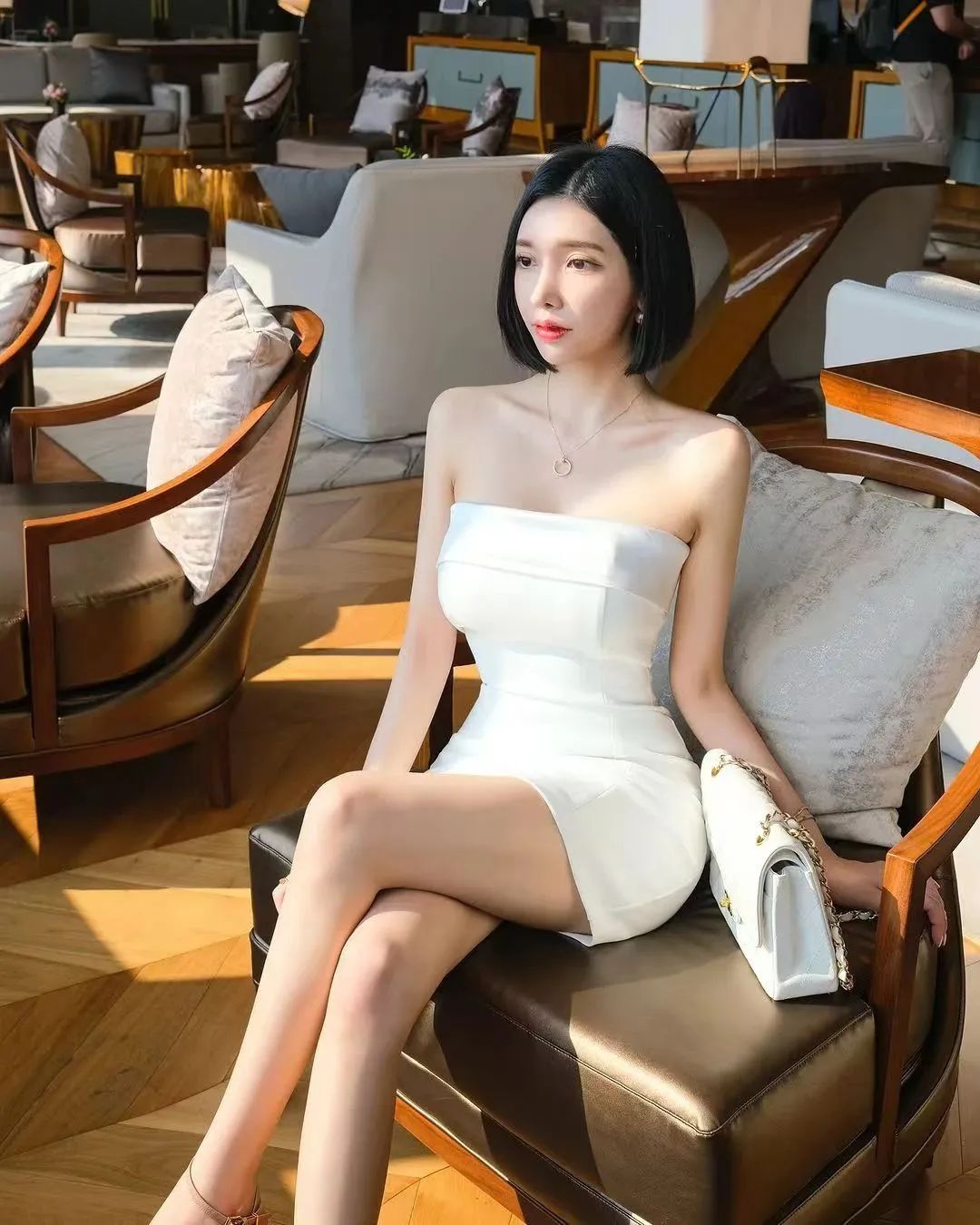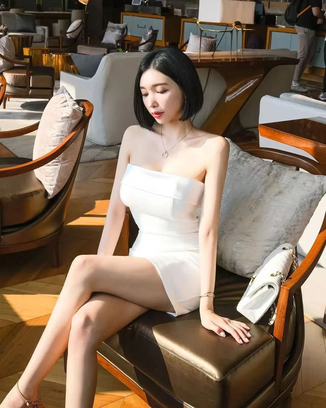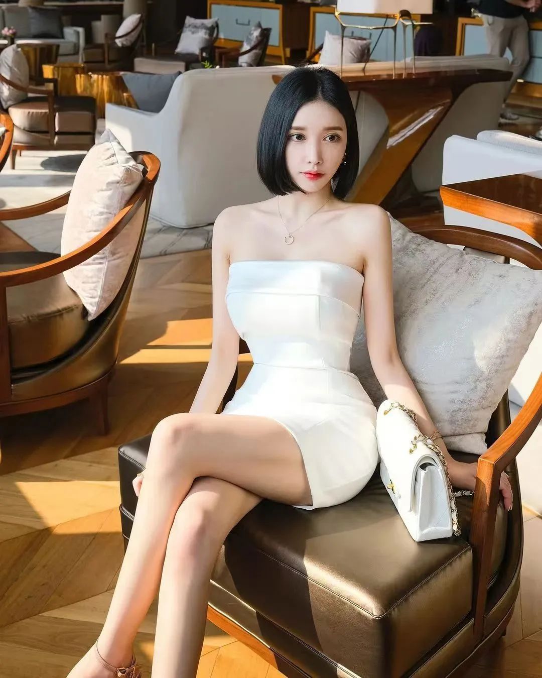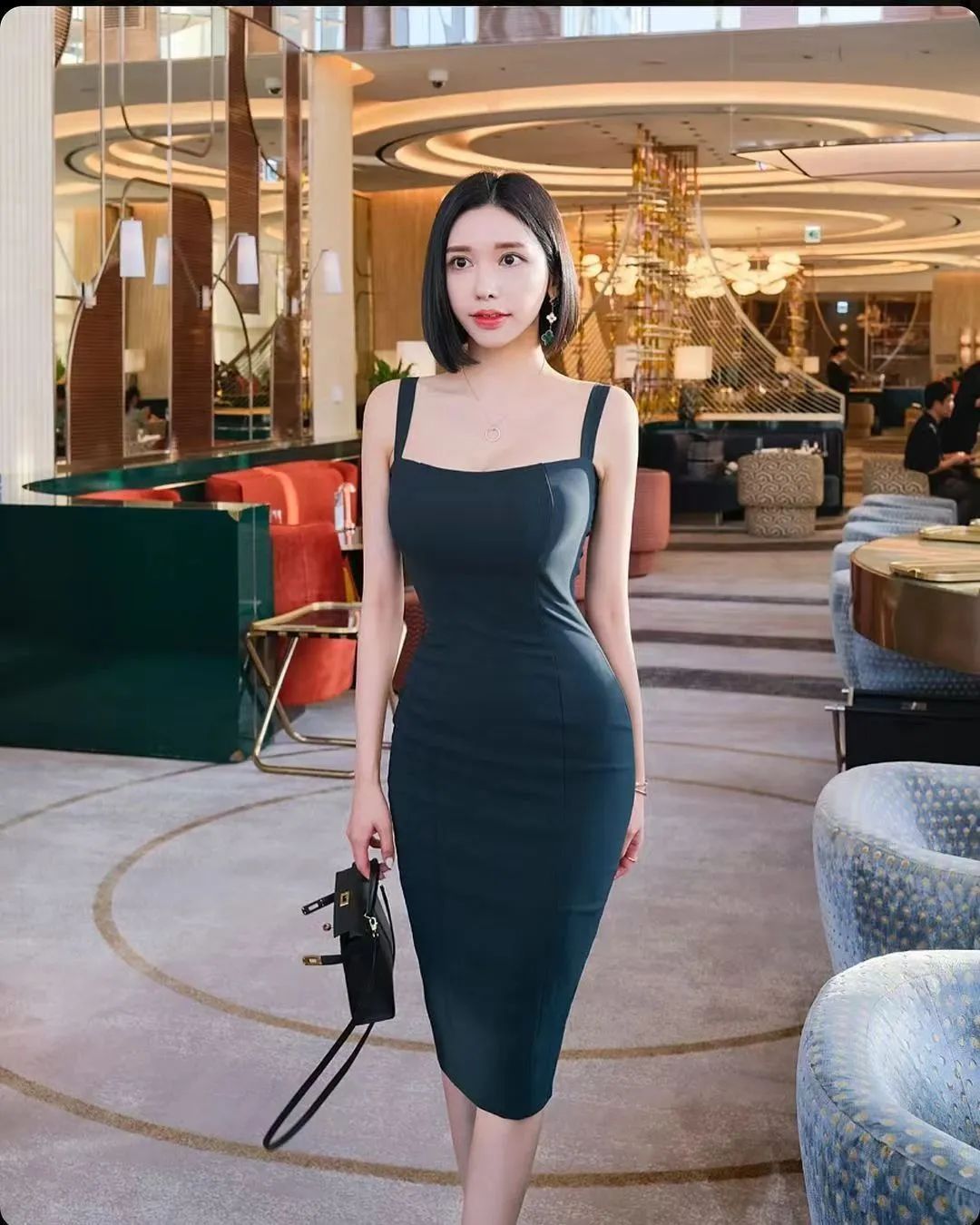 紧身包臀裙下的纤细美腿,令人心驰神往