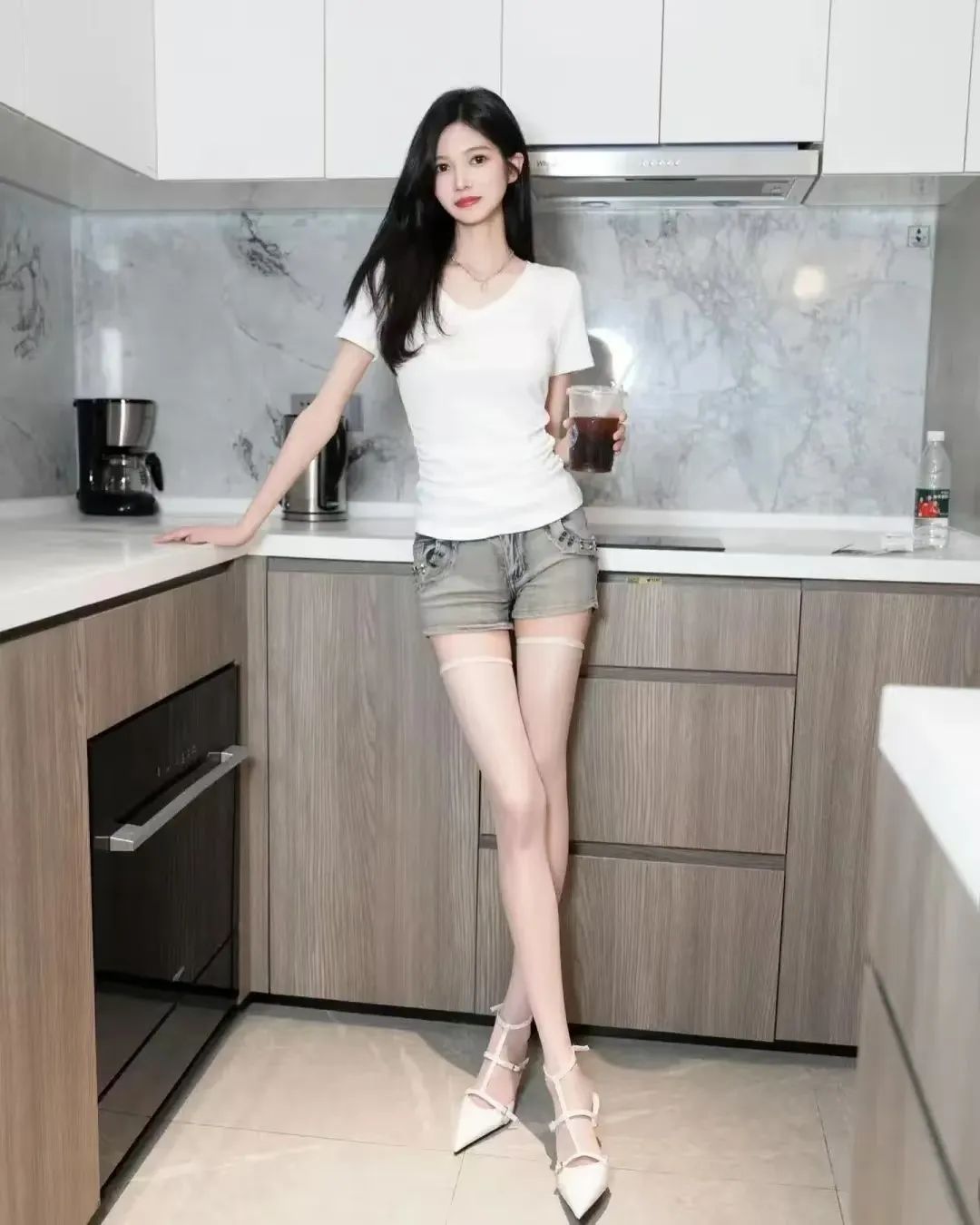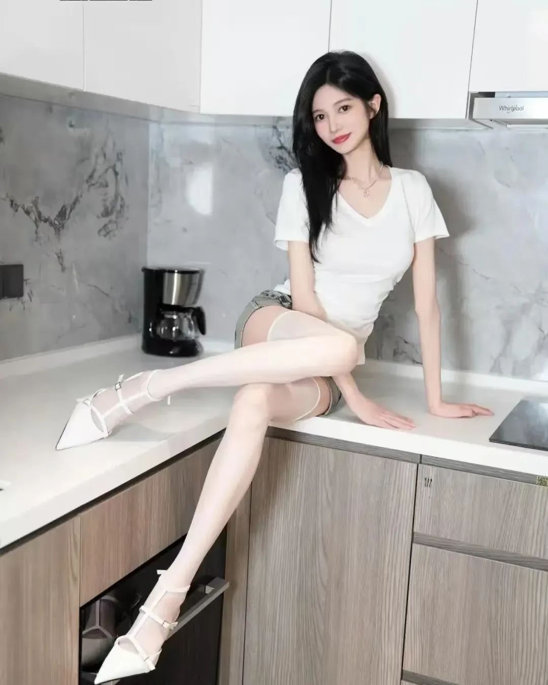 美女模特、黑丝、高跟、甜美笑容