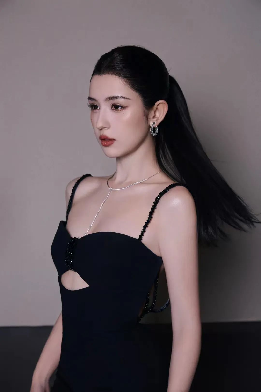 贾青条纹挂脖连衣裙,动人心魄